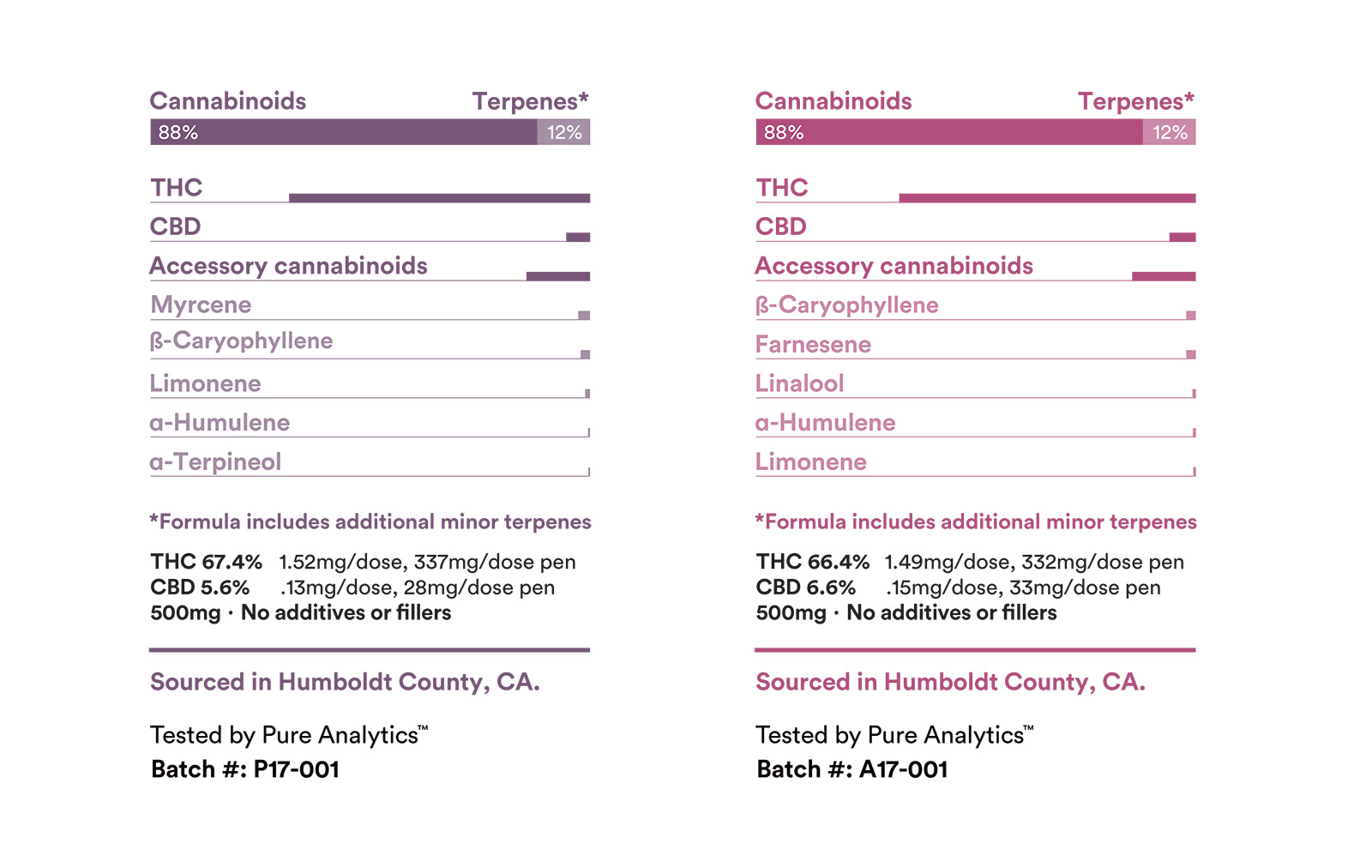 Focus, I think, is a fantastic formula: it’s a 4:1 CBD to THC formula, it’s one of the ones that had the highest ratings in our consumer testing, so I’m really excited about putting it out. Energy and Control also had very high ratings as well. They have very low amounts of THC in them, very different terpene profiles between the two of them, where Energy is, as its names suggests, meant to be energizing for the user. Where as Control is a really fascinating option, and one I think we’ll find most dispensaries will want to have on hand—Control is meant to be an anecdote to excessive THC consumption. It’ll help bring you back from the edge.