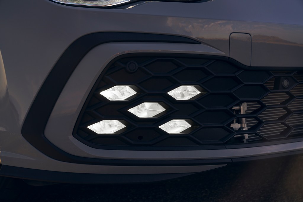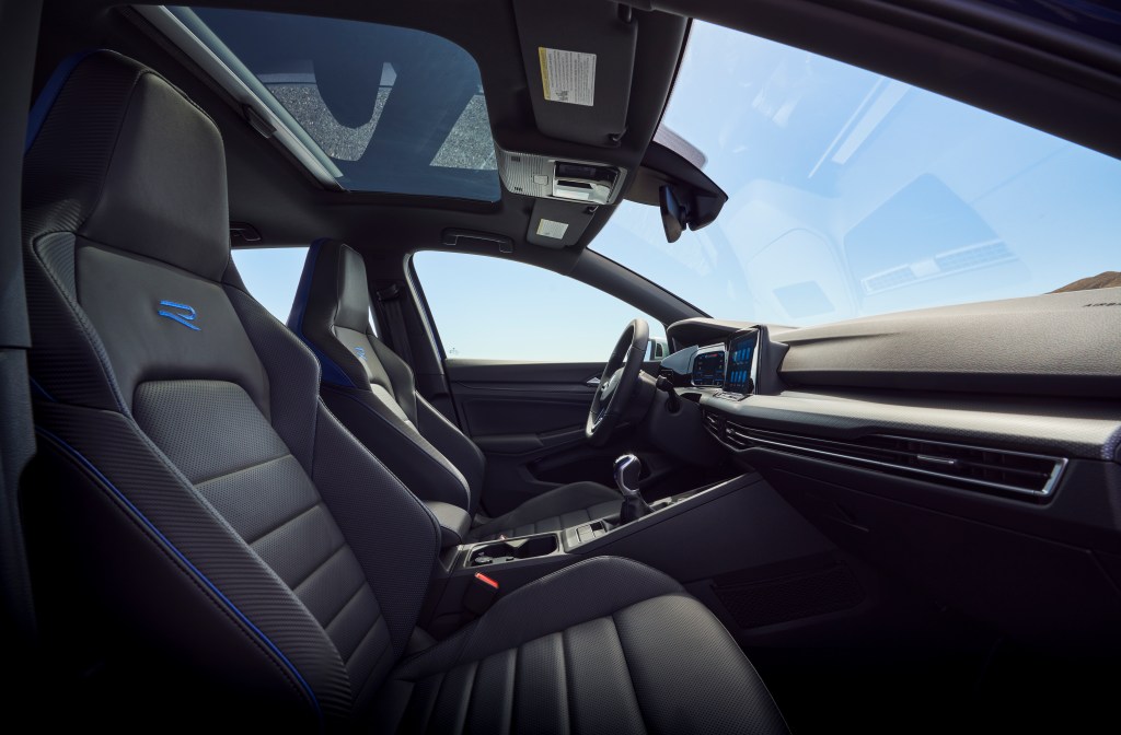 The GTI’s X-patterned LEDs form fog lamps below the bumper, but the R uses this space for increased air intake. Design-wise it gives the face of the R a more serious mien, which—with 315hp vs GTI’s 241hp—is probably fitting. The R also looks a bit more purposeful from the rear, with a far longer, slotted rear wing for increased downforce.