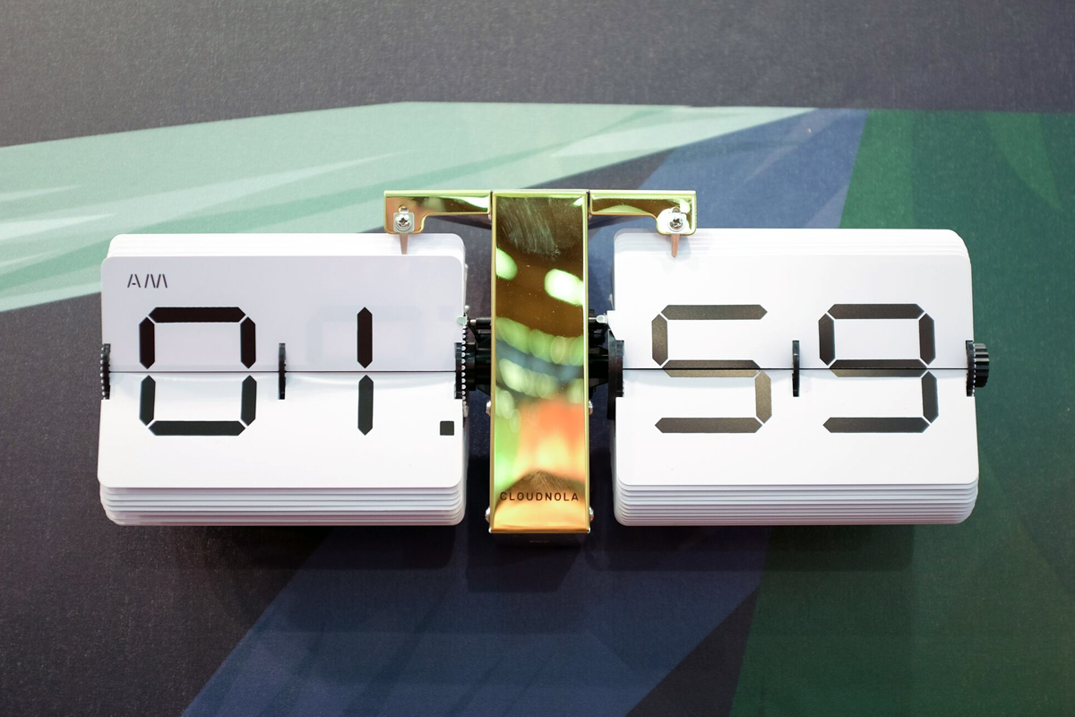 Renee Vendrig designs and produces sophisticated, elegant clocks through her brand Cloudnola. In some models the shape and color are the focus, while in others function wins and the mechanics are completely visible, like in Flipping Out. Despite the sometimes daring shapes (especially in Timeline) the hour is always readable, stylish and sleek.