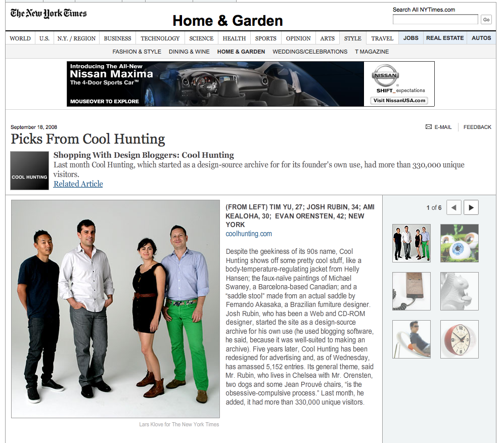 Twenty years ago today we created COOL HUNTING in our kitchen as a personal utility and archive of design inspiration. Coming home from a day at work the first thing we’d ask each other was, “What did you find today that excited you?” We’d talk about those discoveries, eager to share with each other and on occasion would get a bit competitive about whose find was more remarkable.