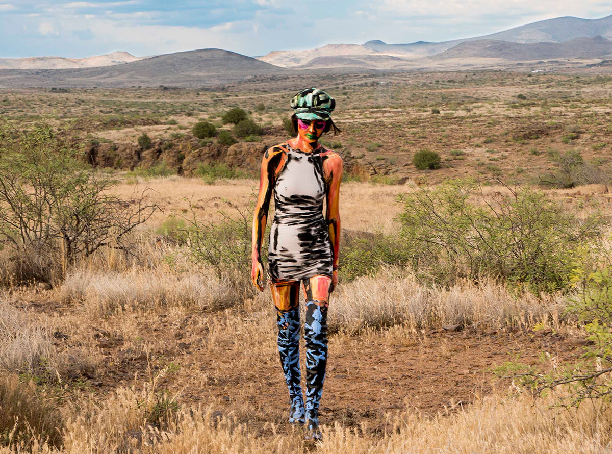 Painting optical illusions on the human body, using the Arizona desert as backdrop