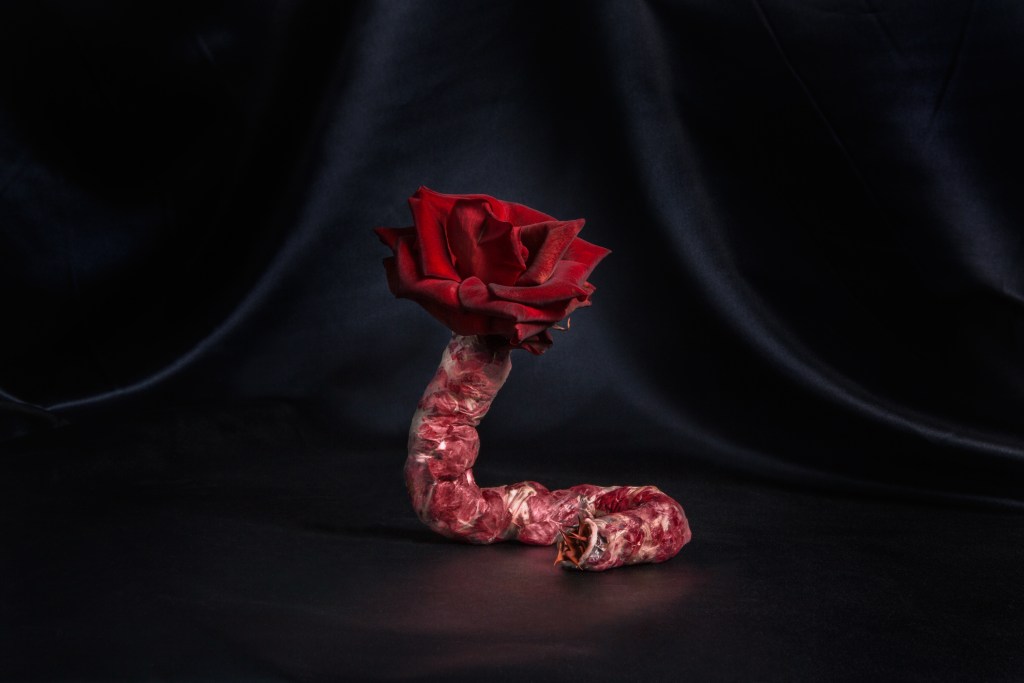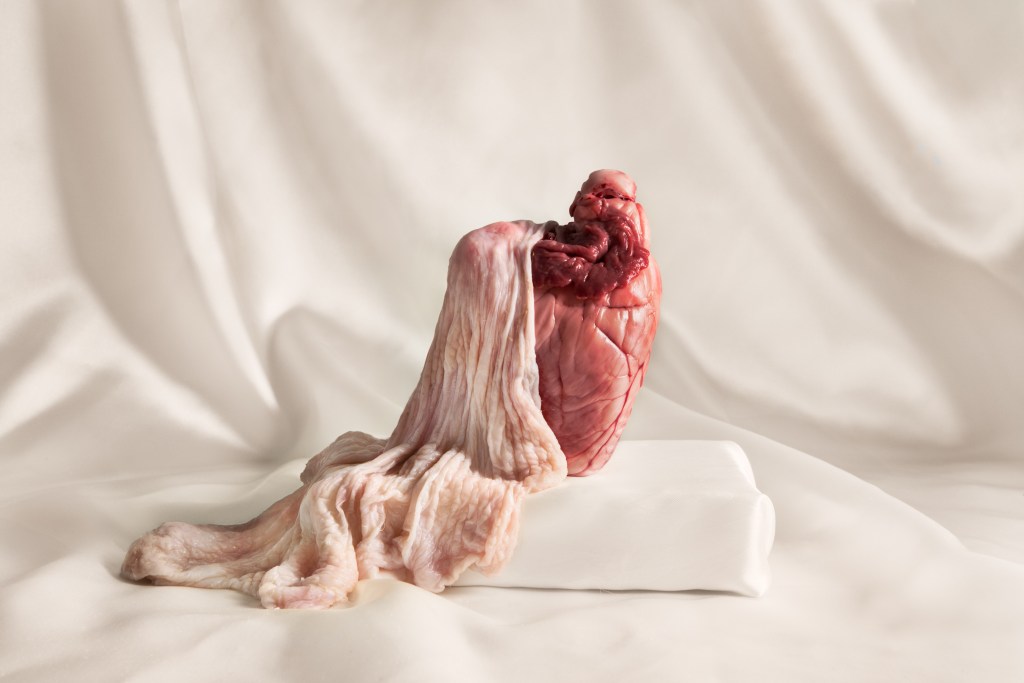 It was a messy and slightly confronting process. As a vegetarian, I had a few ethical dilemmas going into this but I worked closely with a butcher friend and was able to create the series and not conflict with my personal views about meat consumption and food waste. Each image was highly considered in its symbolism but in terms of the framing and actual visual outcome—that was created after a few glasses of wine and a lot of trial and error. The thing I love most about still life is that you’re creating something that only exists through the lens. The image itself looks like it could be a sculptural piece but if you step outside of the lens and see what’s really going on you lose a lot of the beauty.