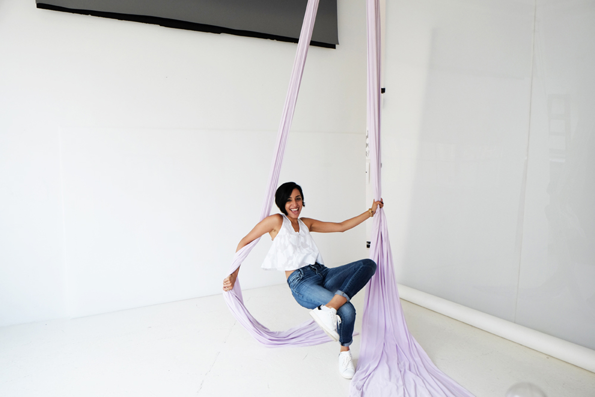 To meet openness of her subjects, Aranka also pursues the deep body consciousness they possess. Not only does she work with a contortionist in an attempt to release the “invisible points” where there is an absence of “body awareness,” she practices aerial tissu. Lavender colored, silk chords descend from the ceiling of her Chelsea studio.