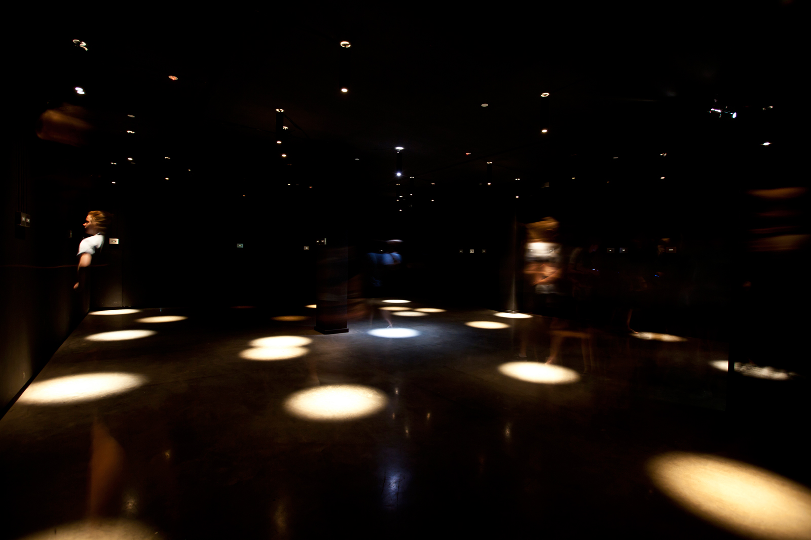 “I realized that the more information that is part of an image, the more the image becomes an important part of the work and that’s not what I am looking for. I am interested in the perceptual process.” Campbell believes the more one reduces the visuals and moves work to a simpler place the more viewers will be interested. “I can’t imagine people getting sick of reduced work because it is never fully given to them,” he says, referencing one of his most powerful and reductionist pieces, “Last Day in the Beginning of March.” He refers to the work as a visual poem about the last day of his brother’s life. It manifests as 25 spotlights pointing at the ground in a pitch black room, each light going at its own rhythm. In some ways it is a symphony of the rhythm of light. Each light has a phrase that viewers can read, just a few words of the artist’s memories of moments he shared with his brother—”Windshield Wipers,” “The Trailer (refrigerator noise)”—that inform the lights behavior.