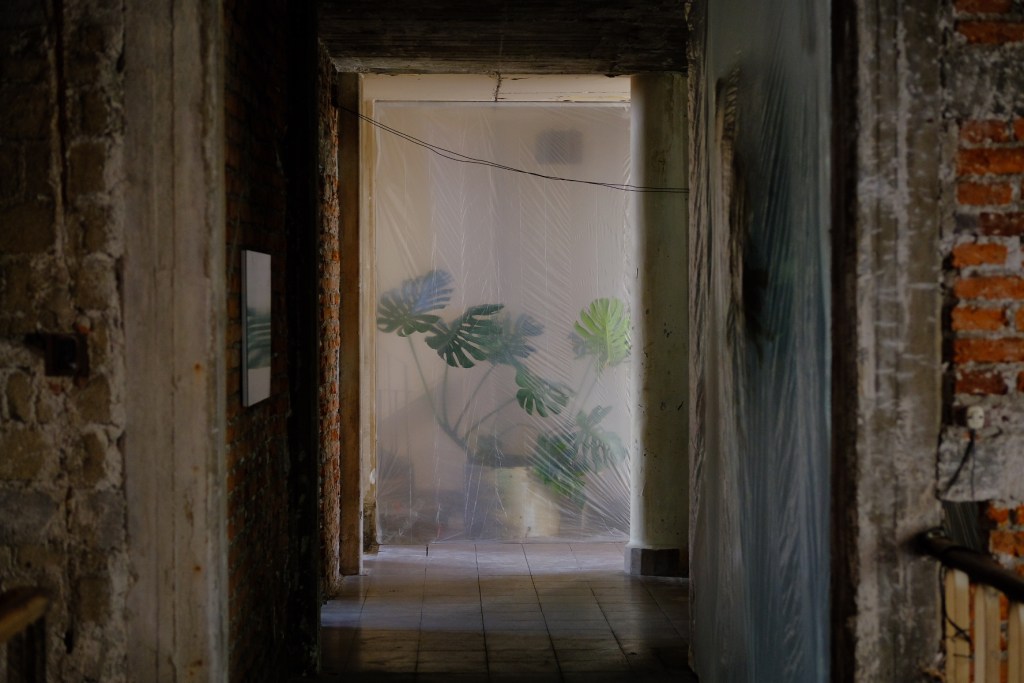 Living elements (like floral moments or plastic-wrapped shrubbery) and representations of life (including imagery of flowers) infiltrate each room. Throughout, Graessl taps into dreamlike wonder and guides attendees from room to room asking them to question what they encounter. There’s something haunting about Amor Fati and something haunted about the venue. And it’s this logic that allows all of the parts to work in service to one another—or consume each other—much like an ouroboros.