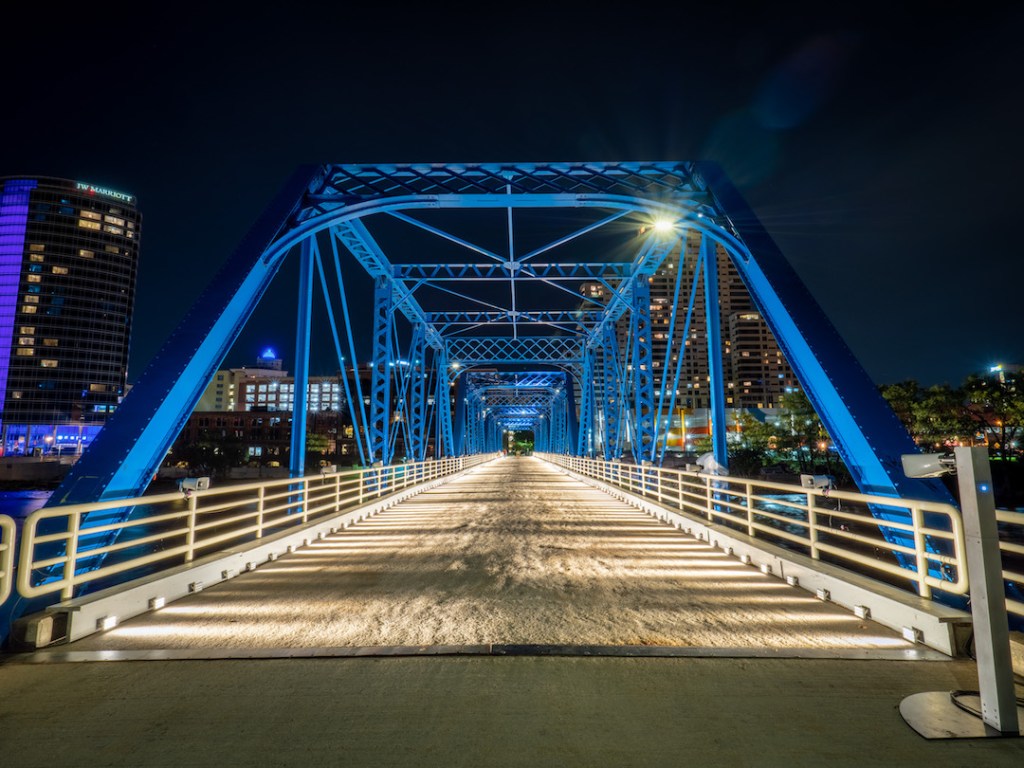 With a strong interest in technology, Rafael Lozano-Hemmer’s installation “Voice Bridge,” finds itself on the well-traversed Blue Bridge, which connects the east and west sections of Downtown Grand Rapids. The project invites passersby to have their voice recorded through an intercom and played back, resulting in a succession of voices that are audible across the stretch of the bridge. Each sound correlates with a light, so this piece is best viewed at night. Uncensored, it gives the public the opportunity to be heard, literally and figuratively on an unlikely stage.