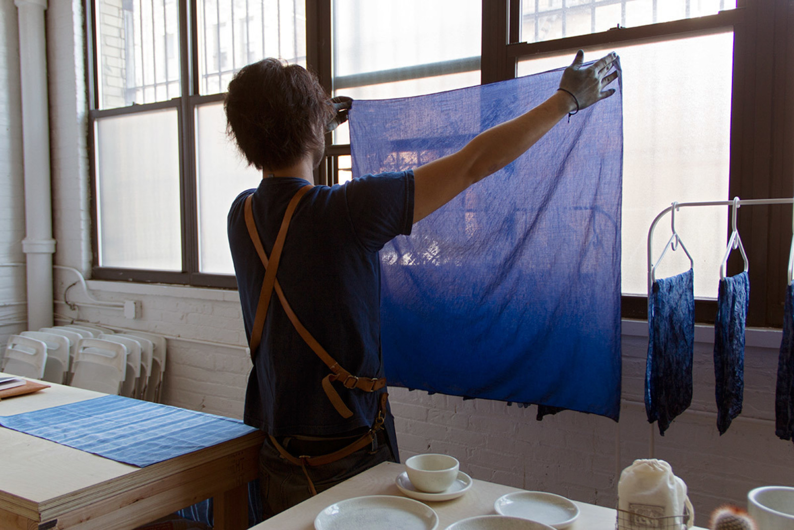 Here at CH, indigo is our muse—but sometimes the final product can’t tell the entire story on its own. Natural indigo blue is not an easy color to achieve, is the primary takeaway from our conversation with BUAISOU, a unique collective that not only grows and harvests indigo leaves in Tokushima, Japan but also does the actual dyeing. It’s the merging of two distinct crafts. From farm to fabric, it’s a long-term, attentive process likened to making wine—and requires hands in every step of the way—at the end of which emerges a vivid spectrum of shades. We visited BUAISOU’s small but airy first-floor studio where co-founder Kenta Watanabe shared how their vat of fermenting sukumo dye comes to life in Brooklyn.