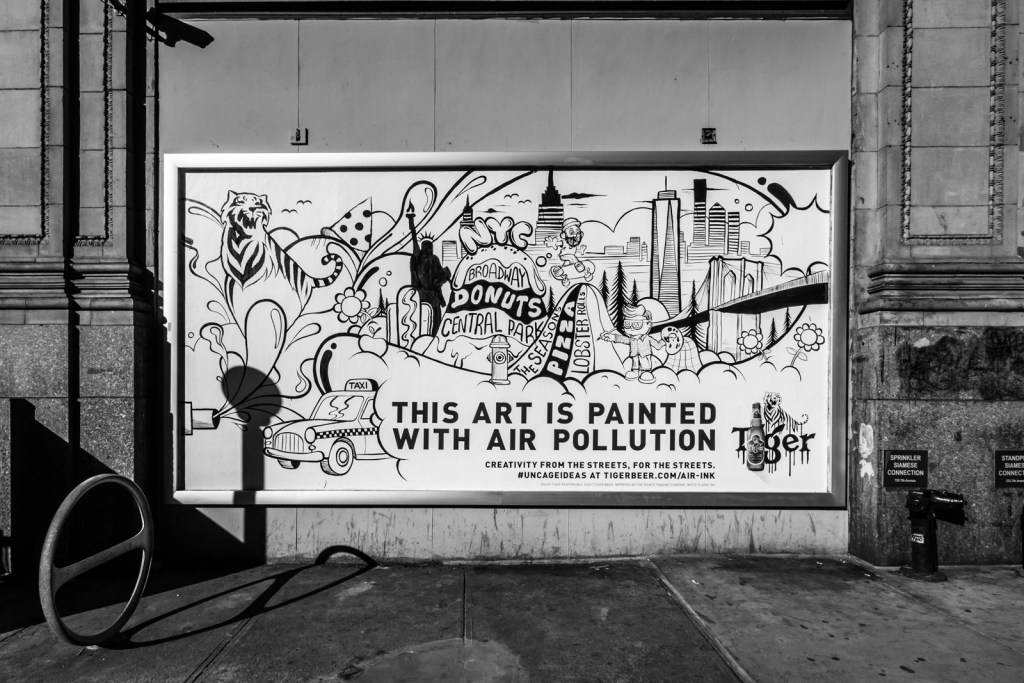 This exhibition for Tiger Beer features work made using ink produced from air pollution