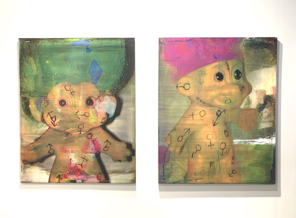 Adding to the ongoing conversation around gender, artist Mathieu Malouf weighs in with silkscreen works seen at House of Gaga‘s booth during Art Basel. These chromed canvas pieces, with names like “PUPI” (2018) and “CACA” (2018), feature toys with colored hair and gender symbols. The question Malouf begs is society’s impact on gender stereotyping and the application of identifiers.