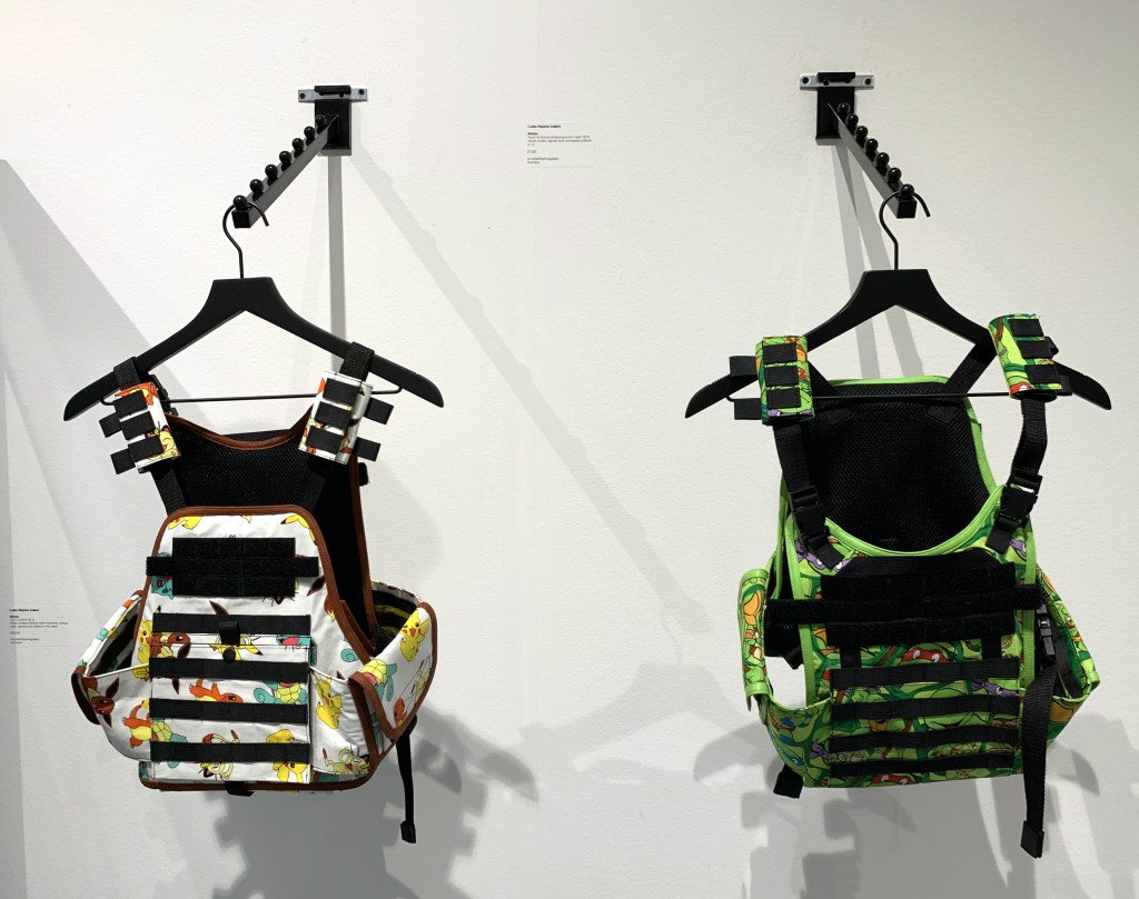 As direct as possible, WhisBe’s “Back to School shopping/adult vests” (2018) and “Safety Defense Box” (2018) tackle child violence. The former mixed media piece appears to be a bulletproof vest for children, the latter (visible as the lead image here) positions hand guns inside of lunchboxes. Seen at Scope Miami Beach, in the Castle FitzJohns Gallery installation, this dark satire is immensely effective in an age of regular school shootings.