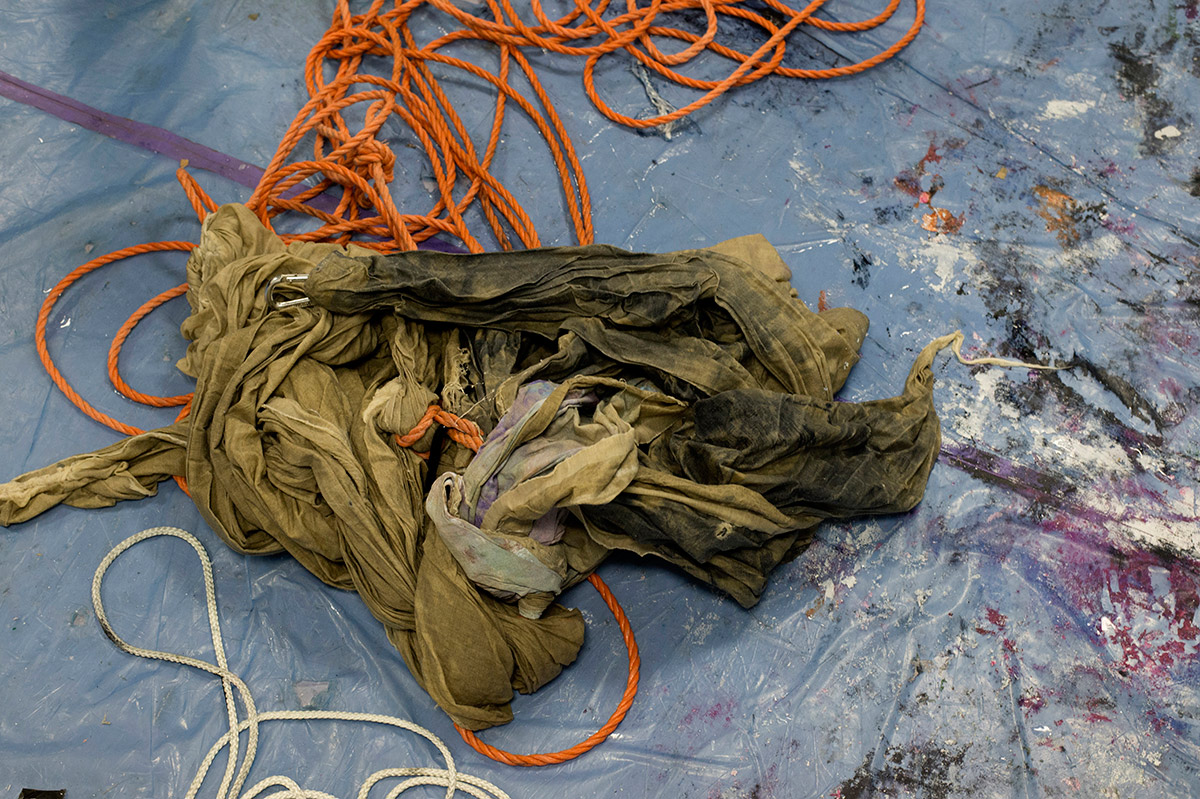 Late last year, bicoastal American painter Cole Sternberg stepped aboard a bulk shipping vessel at the Shin Kasado port in Western Japan. It was the Ultra Letizia ship’s maiden voyage, headed toward Portland, Oregon. And, while the boat carried no cargo (as it was on a test run) it would provide a home and studio space for Sternberg and his linen, graphite and watercolors. On board, the artist produced a series of works inspired by the experience, all of which incorporated a process of weathering by the elements. These works will be shown at LA’s MAMA Gallery, during Sternberg’s forthcoming solo exhibition “The Nature of Breathing in Salt,” but the story behind them all warrants a deeper dive.