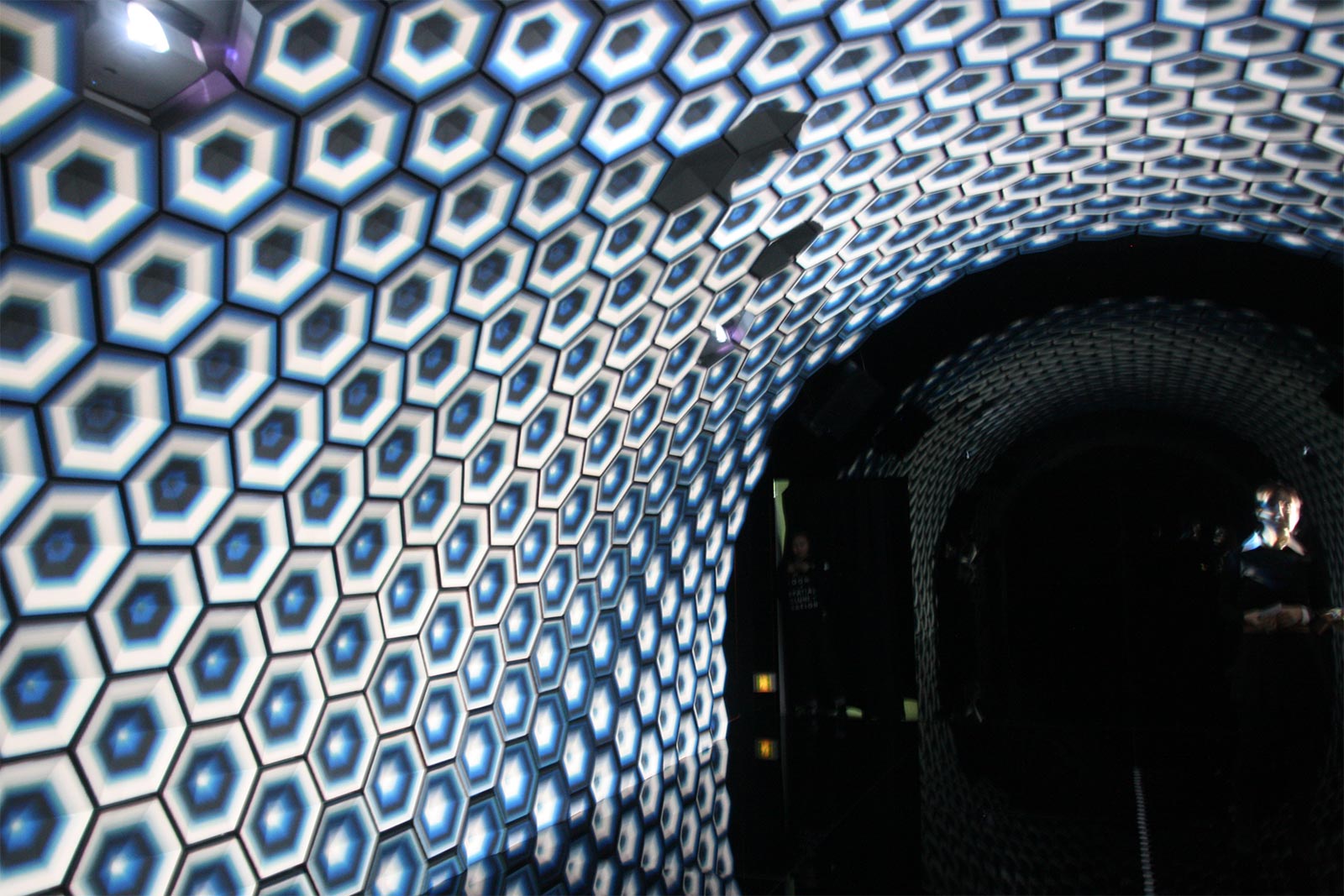 Overall, it’s certainly an Instagram-friendly crowd-pleaser that some might scoff at. But, it accomplishes what art can do: offer a sense of wonder that remains as long as any smartphone photo will. We stayed for an immeasurable amount of time in “My Whale,” by Russian studio Tundra. It’s a mirrored tunnel that seems to stretch on infinitely. Therein, whale songs and pulsating light sync to conjure up the imagined experience of being inside the marine mammal. We spent even longer in Carlos Cruz-Diez’s “Chromosaturation,” where the Venezuelan artist has set up an artificial environment of three color chambers, disrupting our perceptions, and presenting color as a truly immersive, physically altering experience. Check the slideshow here for a brief taste.