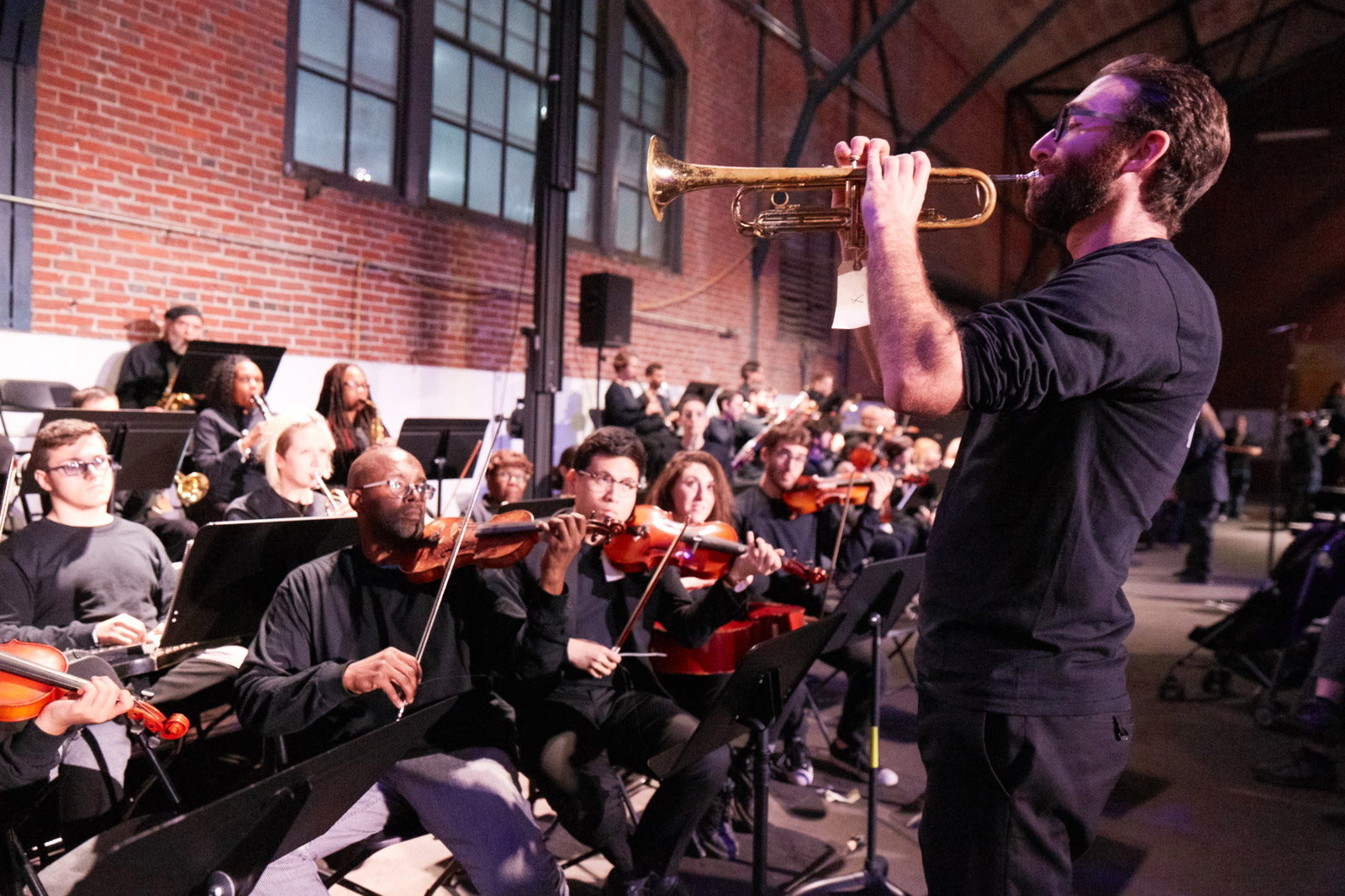 He paid careful attention to those who would take up each instrument, as well. “A lot of my decisions about things to do in the piece came from a sense that would showcase the community of people who would play.” There was the widest spectrum here, from professionals to young children who barely knew how to make a sound on an unbroken instrument. “I wanted to make a musical event that would showcase this moment when the community came together to play them, to show these problems.