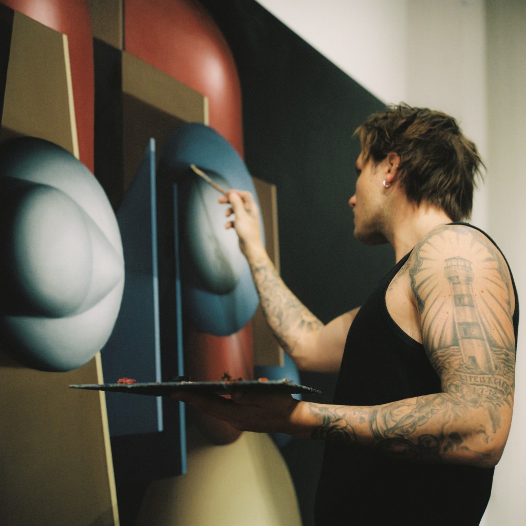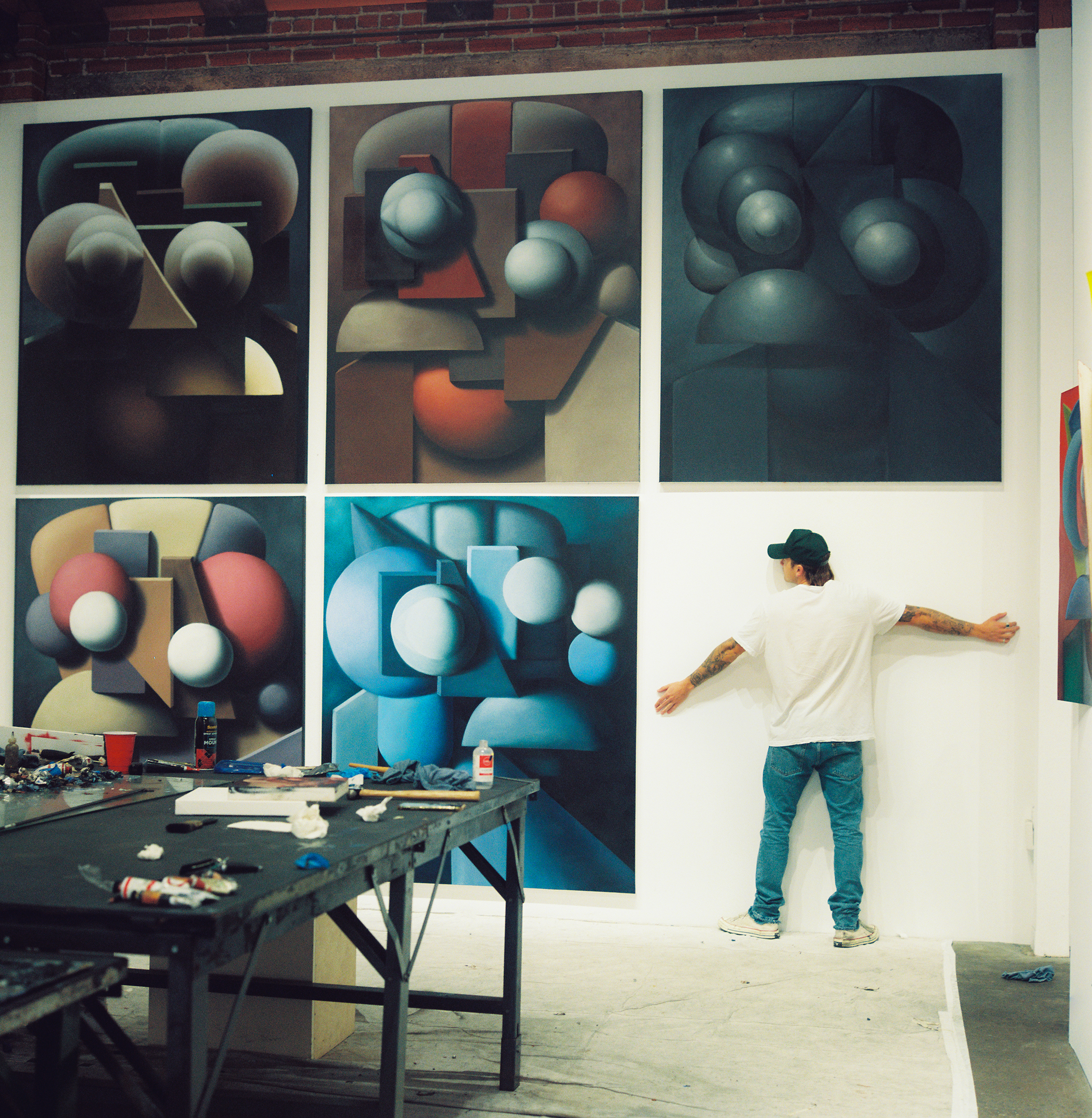 Portland, Oregon-born Devon DeJardin started painting after a proposition from an alleged sugar daddy. The man, over Instagram messages, offered to pay DeJardin if he spoke with him over the phone—the artist reluctantly consented. “I know this might sound weird,” the man said to him, “but are you into spirituality?” Approaching the end of his four years of studying theology at university, DeJardin, now very intrigued, confirmed that he is indeed spiritual. “I’ve been following you for a while, and I think God or whatever you believe is telling me to tell you to start painting,” the man continued. That same day, DeJardin, who had never picked up a paintbrush before, went to the store and bought a canvas and acrylics and began painting. Now, he’s presenting his first solo gallery show, entitled Giants, at New York City’s Albertz Benda.