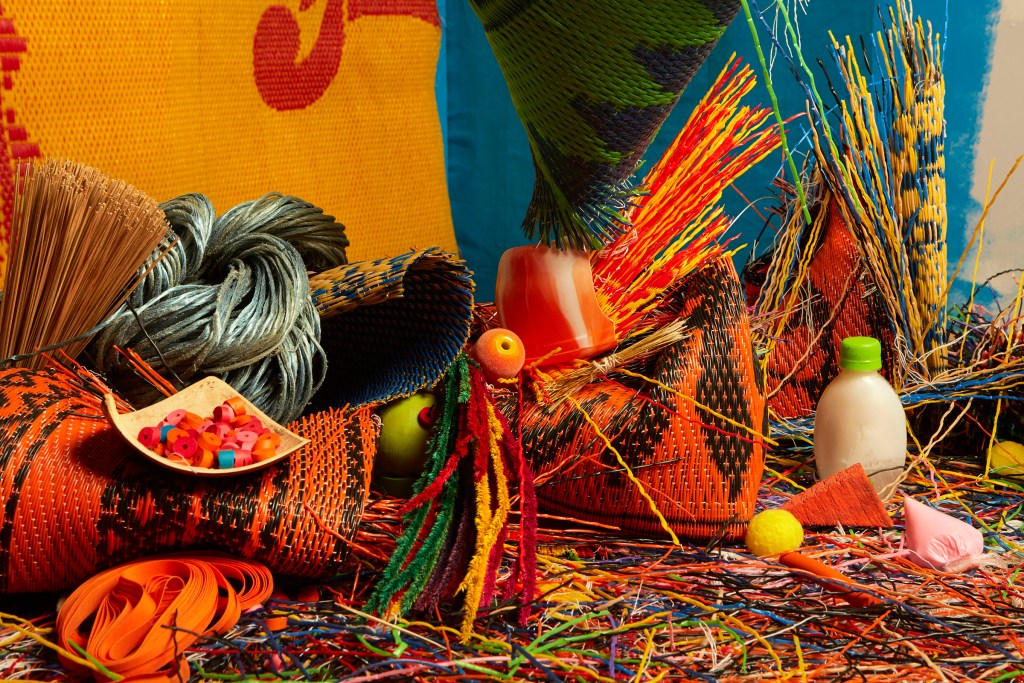 Lorenzo Vitturi‘s work skillfully blends photography, sculpture and reportage. In the majestic baroque halls of Palazzo Pepoli Campogrande, Vitturi presents Money Must Be Made, a 2017 series made in Lagos, Nigeria. In Bologna, this series becomes the centerpiece of an impressive sculptural installation. Vitturi spent many hours in Balogun, one of the largest street markets in the world, photographing people, places and objects (including many used for cooking, eating and transporting food), but he also collected many materials that later became the subject of the surreal still life works he now displays.