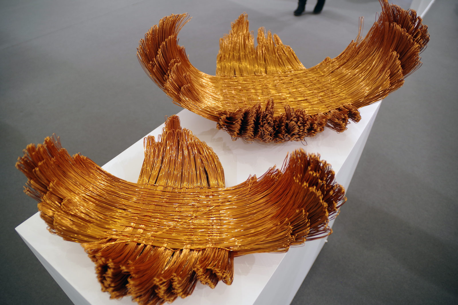 Another copper wonder, Italian sculptor Antonella Zazzera‘s “Ri-Trattica ID 25-15/b” offers up an explosive spatial configuration. Seen at the Jeanne Bucher Jaeger Gallery booth, the large-scale work (in a series of two) plays with both light and form to a charming degree. Copper thread has been Zazzera’s medium of choice for some time now, and her body of work varies in scope from smaller pieces to large, outdoor installations.