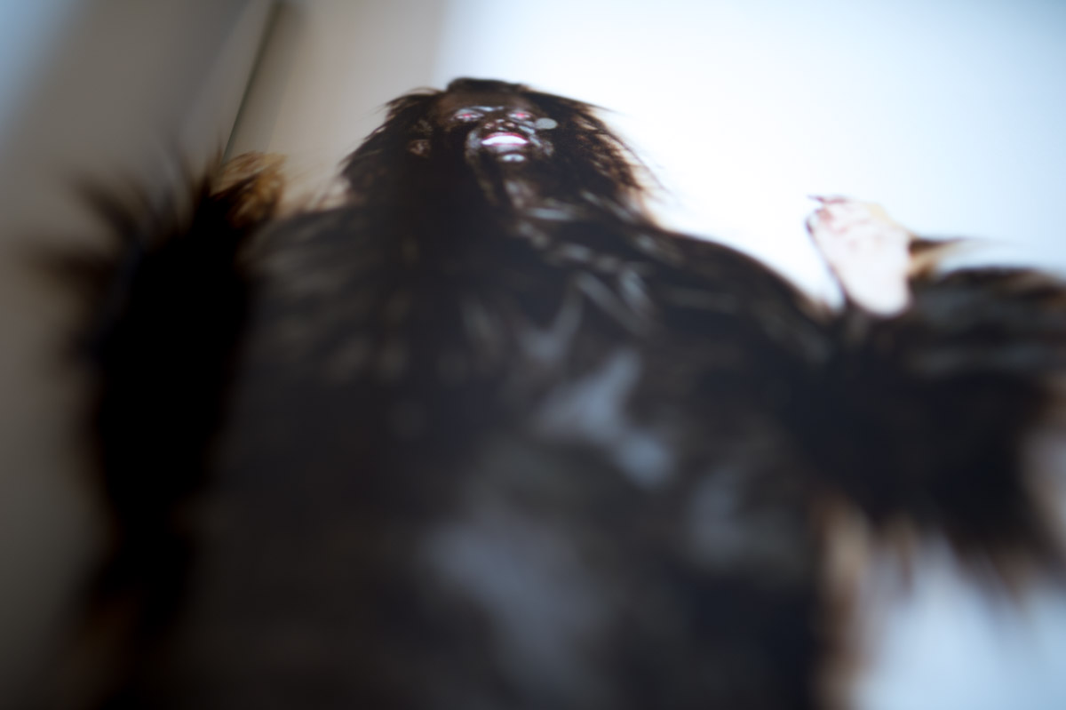 It created this complete theatrical device that was the foundation for years. The second show I was dressed like that crazy monster in an all human hair suit, completely covered, painted black and stripped down to red panties. There was always pretty music and images and it was music, images and performance immediately. Then it just developed more and more.
