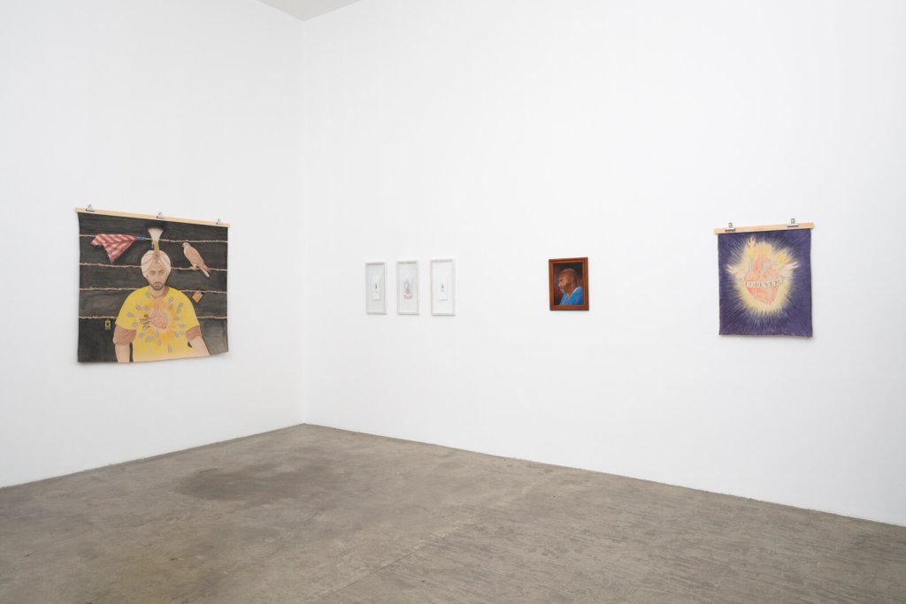 Born in Iran, Omid Mokri studied at the prestigious Honarestan-e Honarha-ye Ziba art school in Tehran and later attended RISD and Cal Arts. Most of the works in Mokri’s 21 Arrows show (open through 13 May) were created during the year he was incarcerated. The artist used pillowcases and sheets as canvases, made his own paint by grinding down the pigments from colored pencils, and fashioned paintbrushes from plastic spoons and his own hair. The act of making this art is undoubtedly art itself. With the intention to humanize those who are dehumanized in the carceral system, the pieces within this show are simultaneously delicate and powerful.