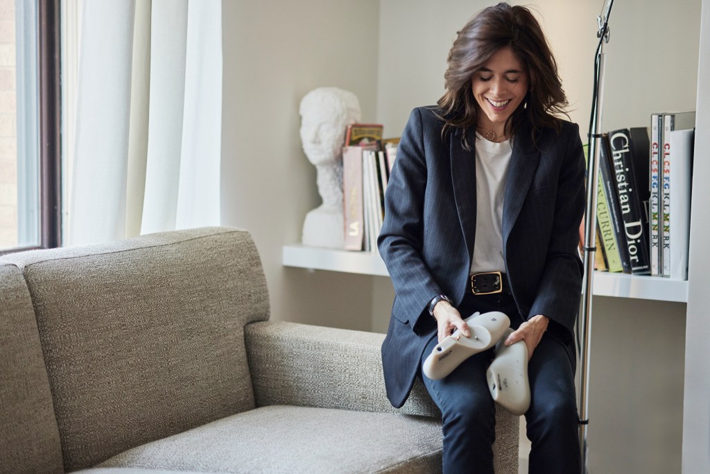 To secure her first internship in the industry, Laffont sent drawings to Christian Louboutin, who ultimately hired her. “When I started to work with shoe designers, I didn’t have time to focus on my own artistic practice,” she continues. After a handful of years with Louboutin (where she learned every corner of the business) and a stint with Sonia Rykiel, Laffont moved to NYC and launched her own business a few years later—while pregnant with her first son and unable to find something chic and well-crafted but comfortable to wear.