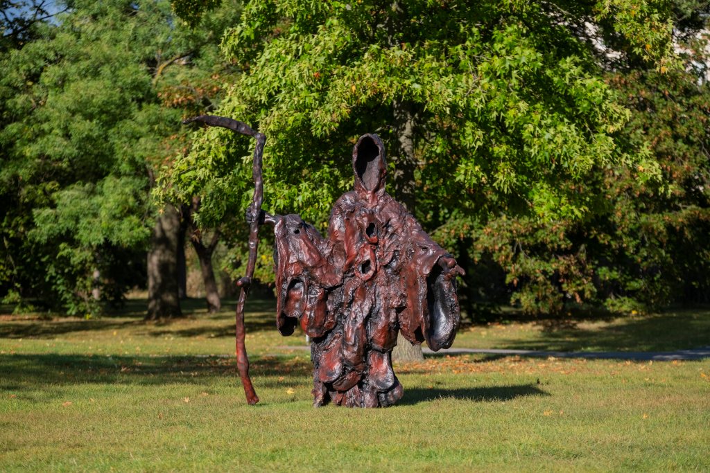 Josh Smith’s Friend marks the artist’s largest sculpture to date, depicting the Grim Reaper in a metallic medium. This piece, modeled from scans of maquettes that Smith designed from animal shells amongst other materials, is meditative of our own mortality and willingness to accept it. The Grim Reaper, faceless, enveloped in black and red hues, takes on whatever form the viewer desires it to. Smith’s work adds an element of existentialism to Frieze Sculpture that is reflective of human nature and the circle of life while still being visually stimulating, crafting a haunting and intimate ambiance.