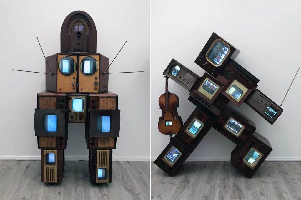 Anthropomorphic sculptures comprised of vintage television sets created by Nam June Paik were shown at Seoul’s Gallery Hyundai booth. Paik is widely considered to be the first video artist and originator of the video art genre. His early work brought the television to the field of fine art by treating the device as a tactile and multi-sensory medium and object. Those on show at Frieze were from the early ’90s, but he was creating works with televisions some 30 years previously.