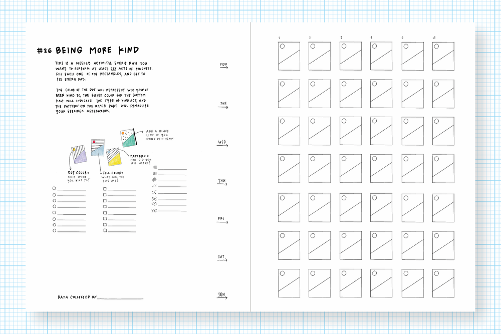 GL: I think I should Venn diagram people who are interested in self-exploration and self-improvement, and people that want to be more creative in their life. There’s really a sweet spot between the two of them, which I feel nowadays is quite a few people. The journal is really about noticing, paying attention, slowing down and asking yourself some questions that you want to learn more about yourself, and using data for being creative and drawing.
