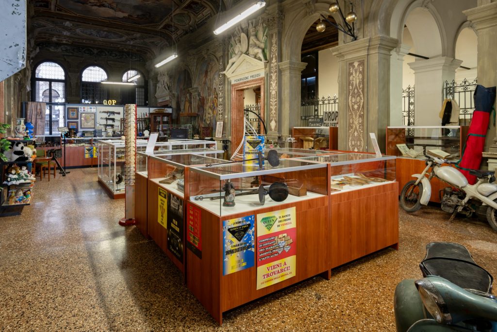 Fondazione Prada presents Monte di Pietà, a project by artist Christoph Büchel, at Ca’ Corner della Regina. Exploring the historical significance of the venue, once home to the Monte di Pietà of Venice, Büchel creates an immersive experience delving into the concept of debt as fundamental to human society and power dynamics. The project features a fictitious pawnshop mirroring the original layout, alongside Büchel’s work “The Diamond Maker” displaying lab-grown diamonds. Incorporating new productions and references, the project investigates the intersection of property history, finance and the creation of wealth. Additionally, Büchel explores the blurred boundaries between physical and virtual realms, engaging with cryptocurrency and online influence to challenge notions of immateriality and wealth distribution. Through this exploration, “Monte di Pietà” prompts reflection on the historical and contemporary significance of debt, finance, and the preservation of cultural heritage.
