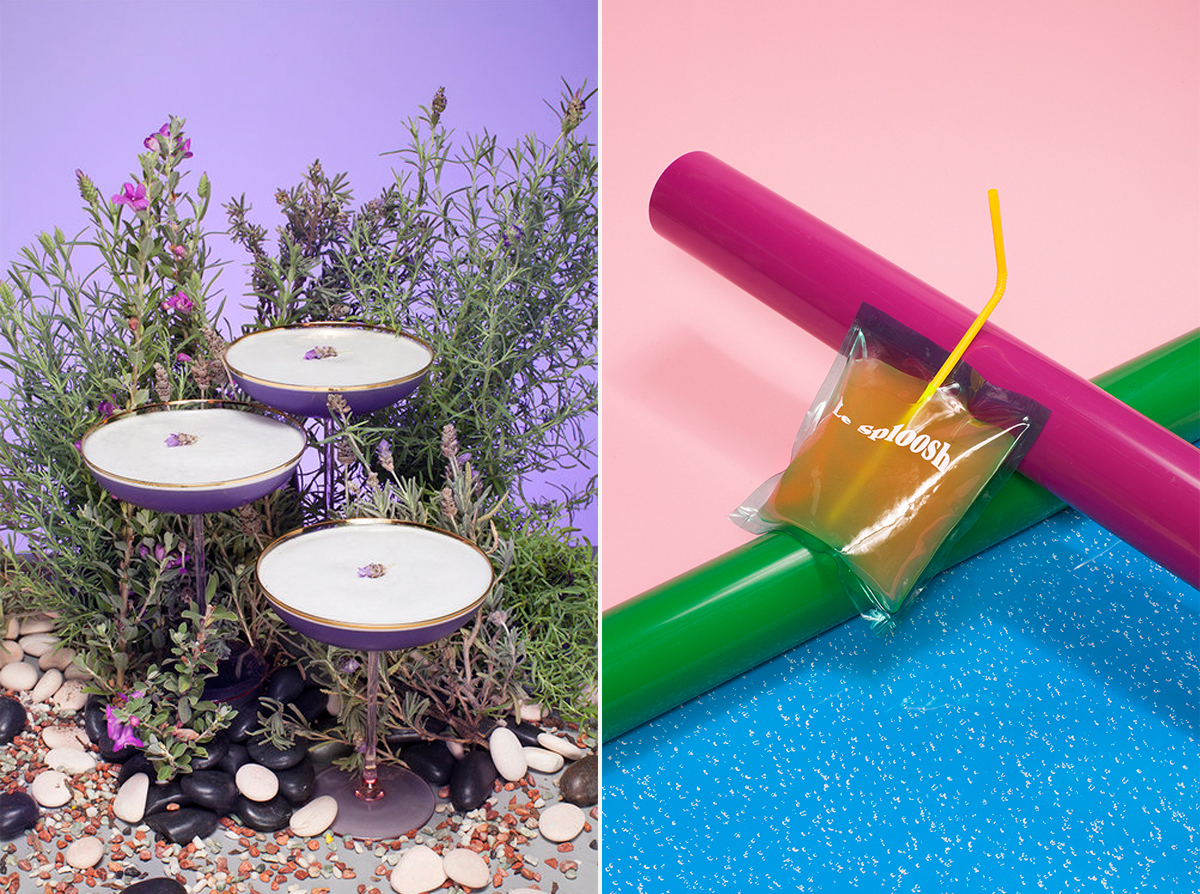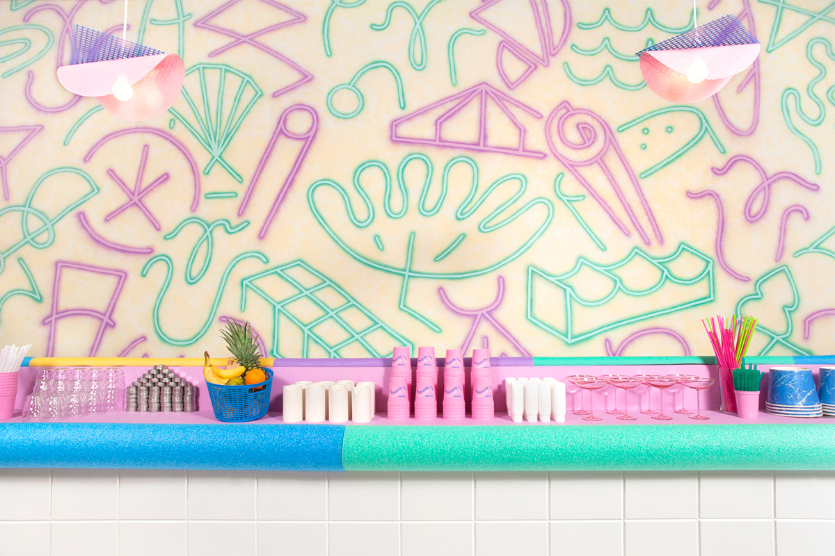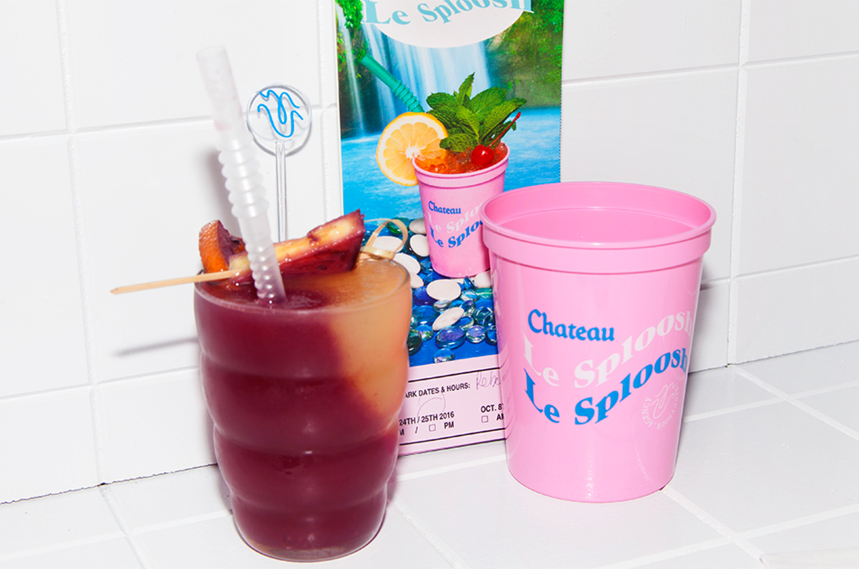 At the edge of LA’s Highland Park neighborhood, a group called the Happy Hour Agency has attracted a reputation for making good times by creating experiences that combine inventive cocktail-making with a pop art sensibility. The group has crafted of slew of eye-catching, photogenic events that roll out for a single night every few months, from the whimsical and woodland Cozy Castle to the future-focused Hypertube. Their most recent Chateau Le Sploosh is no exception—a concept that feels like a culinary water park set against a neon pastel seaside.