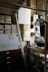 Giovanelli has lived on-site for the last four years. Christo, she tells us, “moved here in 1964. On 17 November, he came here for the first time to see the space because his friend Claes Oldenburg told him that there were two vacant floors.” When he arrived, there was nothing inside. The floors were $70 each per month. Technically, Jeanne-Claude and Christo lived there illegally for a very long time, as it was a building for studios only. The pair pretended their home was a child portraiture studio in order to avoid questions from the authorities. A sign above the door to the residence still alerts people that photography may be underway.