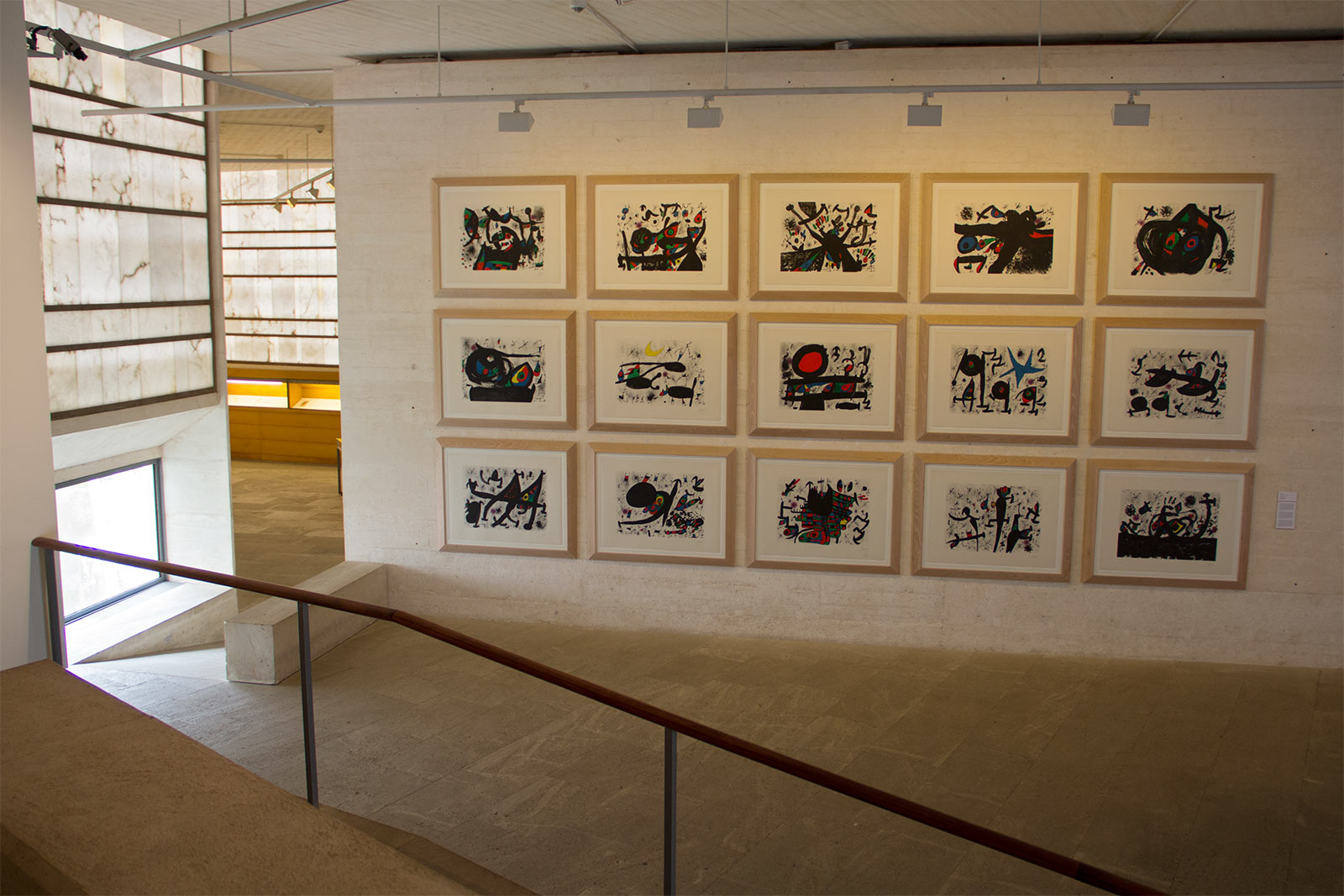 Most are familiar with Fundaci Joan Mir, established by the artist in Barcelona, where he was born. The lesser-known Fundaci Pilar i Joan Mir a Mallorca, about a 20-minute drive from Palma’s bustling center, still distinguishes itself from the older, larger contemporary art museum as it preserves Mir’s two studios, as well as a newer building designed by Rafael Moneo to display his works. The unique architecture not only hides paintings and sculptures around zig-zagged corners, but also tones down large pockets of that intense (and inspiring) Mallorcan sunlight and streams it in pleasurable portions. A bland white cube, this space is not. Here, there are only a few quiet visitors; the peaceful, private area to soak in his untranslatable cosmic observations, captured with the rawness of cave paintings.
