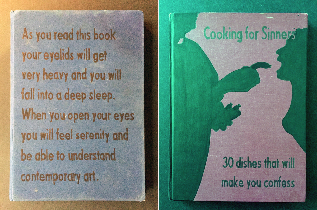 Deckmann has worked as an artist for years, and started doing his book series about a year ago. He finds the books in old bookshops, writes the titles in marker pen, and frames the covers. “As I started to write, it became clear to me that this kind of visual expression was a natural continuation of my way of thinking. Apparently, I’ve got an endless flow of phrases and illustrations, so I’m definitely going to continue making the books,” he says. As well as the books, he creates intriguing sculptures—like a faceless figure dressed in a suit, slumped on a chair, called “Just let It Go, Walter”—and says his future works will also feature words and illustrations on canvas. The artist’s dark sense of humor is reminiscent of David Shrigley’s musings, and the fact that many of his ideas are presented as books adds to their charm. After all, who wouldn’t want to know “Smart ways to use poetry in a street fight” or “1001 reasons to stay in bed: secrets of a horizontal lifestyle”?