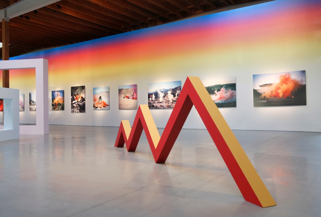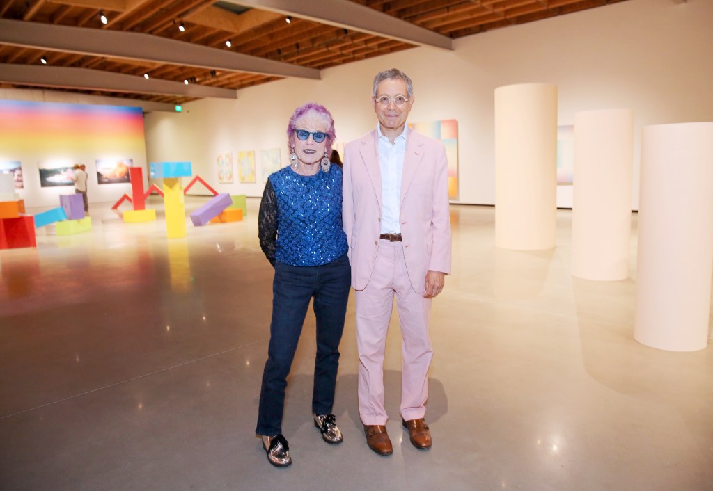 Vibrant shapes and colors created by Judy Chicago fill LA’s Jeffrey Deitch gallery, with its massive wooden bow truss ceiling. The beloved feminist artist produced these colorful paintings, drawings and sculptures between the ’50s and the ’70s—and the show Judy Chicago: Los Angeles celebrates the path that she forged in California. This includes founding the Feminist Art Program at California Institute of Arts to revisiting seminal work she made and exhibited in LA.