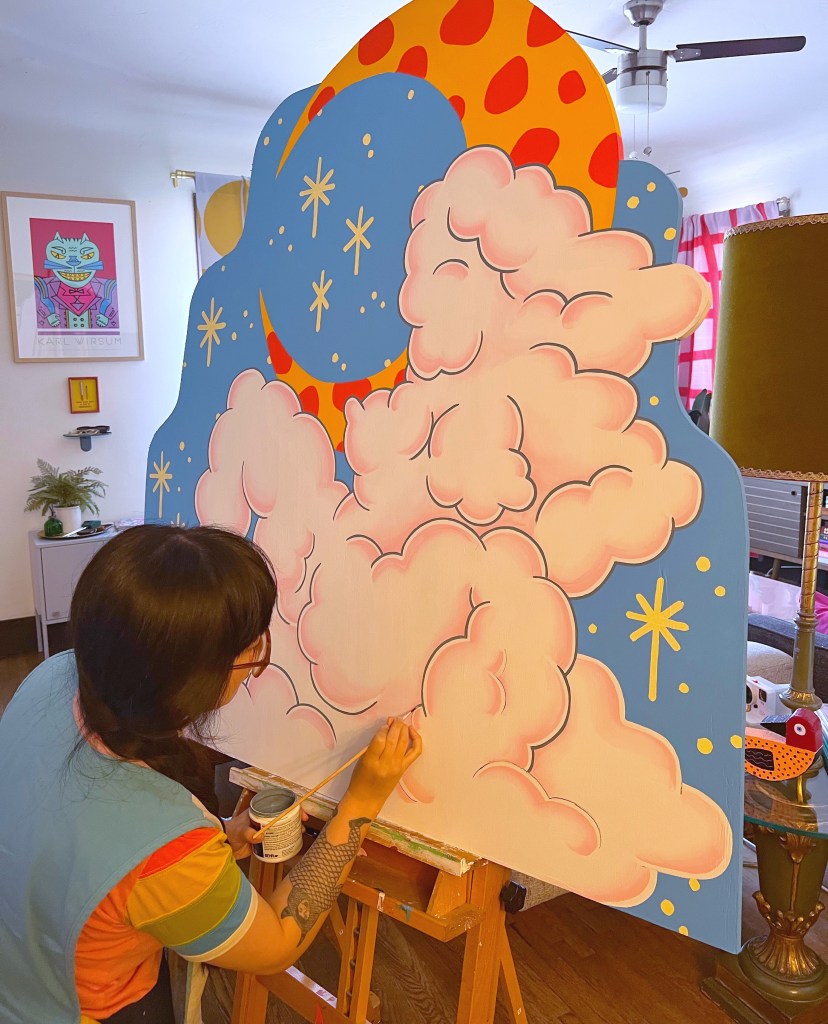 Whether its characters, hormones or emotions, Liu-Wong allows all elements to be complex and contradictory, letting people and feelings that can’t be neatly tucked away into one box lie as they are. The same holds true for the Asian symbols, like koi fish, that run throughout her work. “I’m Chinese American, so I feel like I grew up in a very culturally mixed household,” Liu-Wong says. “I do refer to specific aspects from my cultural heritage just because I think it’s beautiful and interesting and part of my identity, and I think it brings my specific flavor into my work that’s not completely Western, not completely Eastern.”