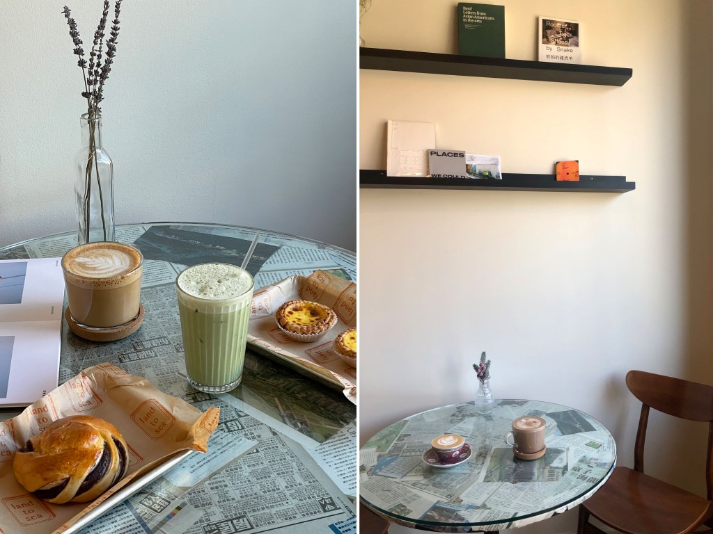The idea of building a space naturally molded itself into a coffee shop, not only because it speaks to the Asian American culture of congregating over food and drink, but also because it allowed the founders to walk in the footsteps of their parents, immigrants who moved from China to the US to work in the service industry as small business-owners as well. To that end, every detail of the shop—from its name to its food options, even its bathroom decor—pays homage to their heritage and the journey of immigrants. “The name, land to sea, inherently is a tribute to our background. The name is likened to the miles our parents and grandparents traveled to bring us here,” Shum explains. This journey is continued on the store’s shelves, where Shum and Zhou curate goods from other small businesses, like Banana Magazine or The Qi teas.