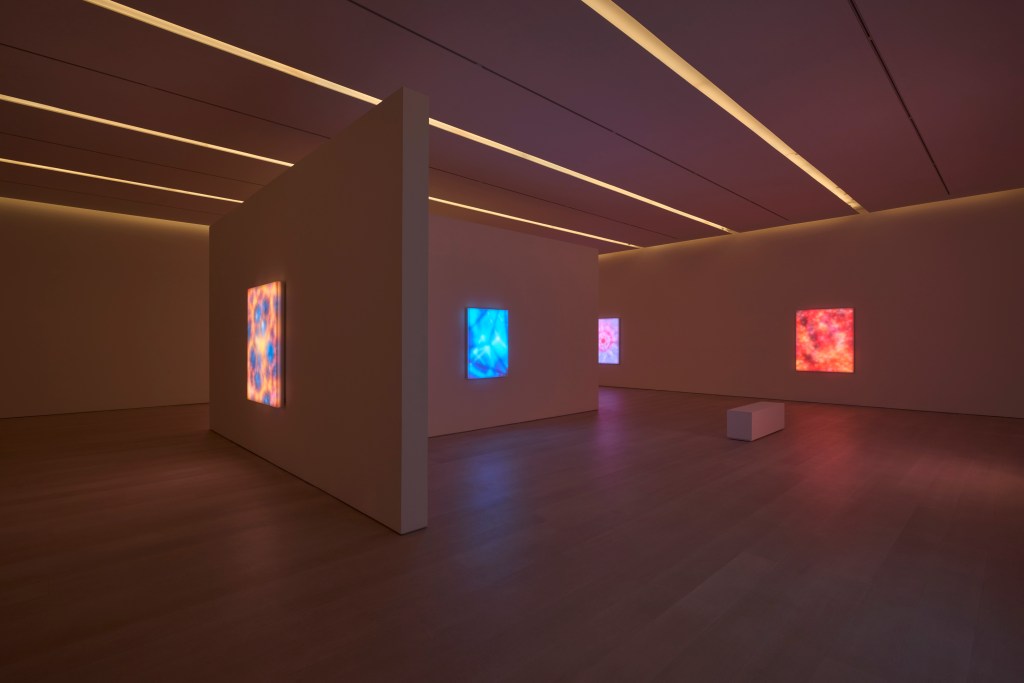A seductive and serene feeling pervades the artist’s lighting-based artworks on view at NYC’s Pace Gallery