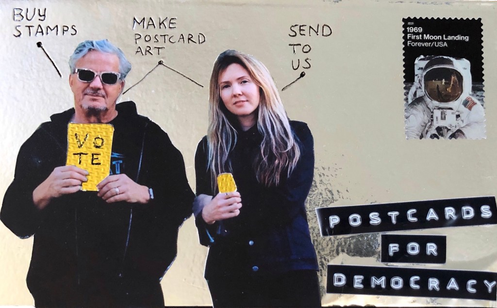 Equal parts political, creative, playful and practical, Mark Mothersbaugh and Beatie Wolfe’s Postcards for Democracy calls for tangible public interest and action in saving the USPS—an essential civic institution and fundamental element of the United States. Whether one sees it as sabotage or a misguided lack of funding, the demise of the postal service will lead to a catastrophic election, as millions around the country rely on mail-in ballots. For the project, Mothersbaugh (DEVO co-founder, musician, singer-songwriter, producer and artist) and Wolfe (musician, singer-songwriter and artist) challenge participants to create and send handmade postcards to a specified address in LA. The act provides funds for the USPS and the final collection of postcards will be transformed into a work of art. The duo describes the joyful, connective and inclusive initiative as “a demonstration at a time that could jeopardize the democracy of the country.”