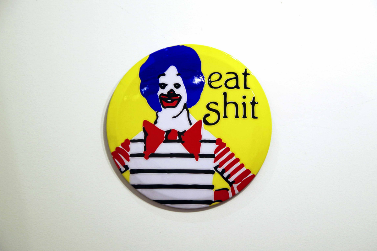Within Toronto’s Cooper Cole Gallery set-up at NADA, artist Jesse Harris presented a protest piece entitled “Three Square.” While the caricature of Ronald McDonald certainly amuses, the accompanying copy punctuates the piece. It’s not so much a play on words, but an indictment of fast-food culture.