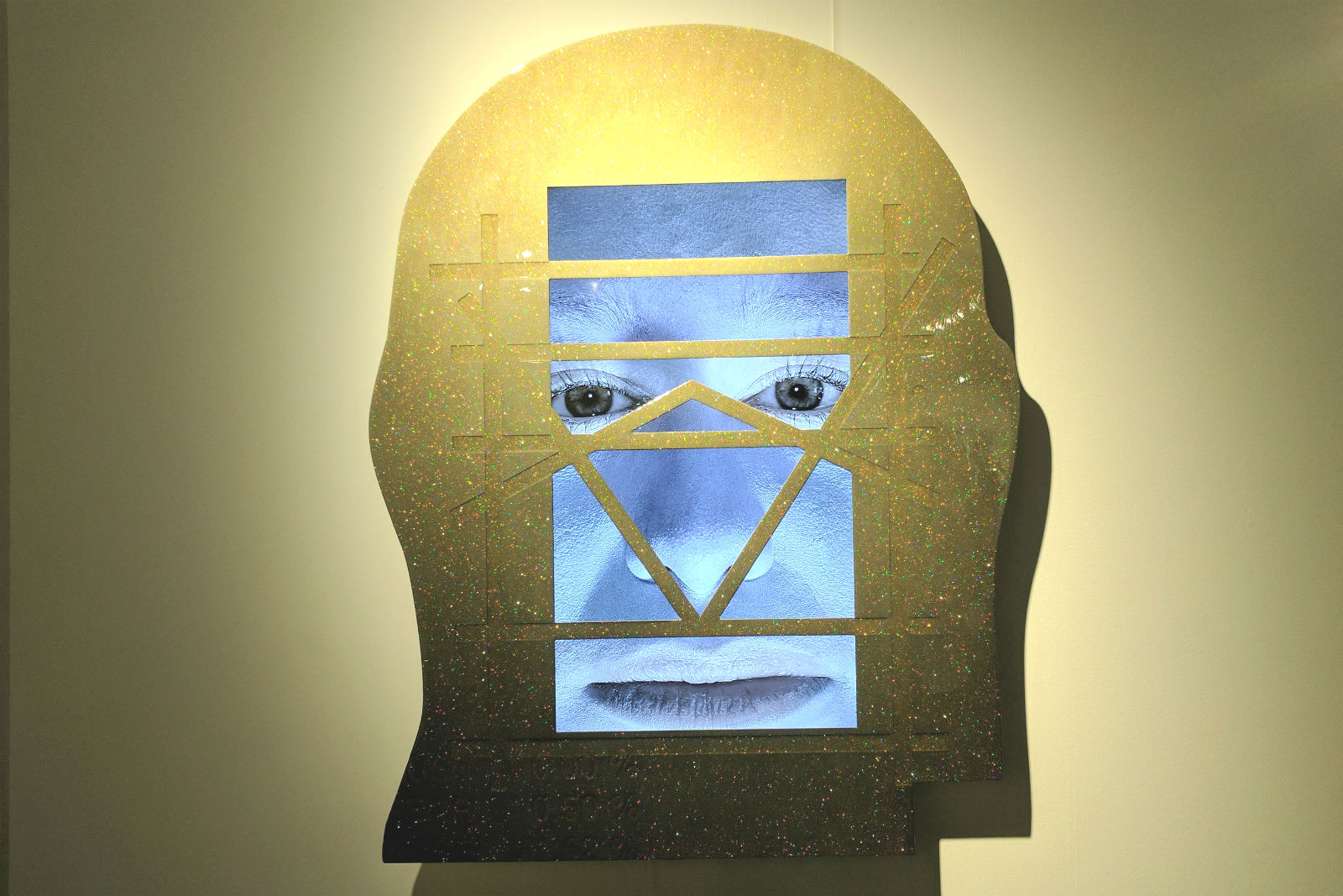 Another Art Basel Miami Beach work, “Za(Gray)” (2016) by American multi-media artist Tony Oursler takes the masked concept to a new level. A video of a human male face plays behind a Darth Vader-esque aluminum frame (which has been painted and given a resin application). Viewed at Galerie Hans Mayer, the engaging piece calls into the question the role of a frame and its impact on the artwork—here, with it all being one and the same.