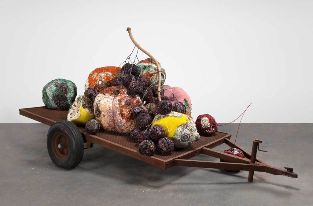 While it was a simple banana taped to a wall that seemed to steal the show at this year’s Miami Art Week, opulence abounded throughout the various fairs too. Many bold, beautiful pieces involved meticulous beading, weaving, and fringing. From fur to fluorite, tassels to tiger’s eye, the materials used in some of our favorite pieces are unexpected and glorious. Sometimes these seemingly ostentatious elements result in sumptuous and lavish pieces, other times they reflect subtle and tender use. The one commonality here is the artists’ creativity and patience, and the results of those skills being undeniably exquisite.