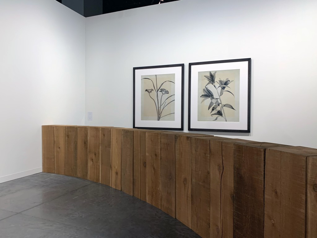 Another wooden standout from Art Basel Miami Beach, Carl Andre‘s “Cedar Rotor” (2002) acts as a complement to one of the artist’s other works in Miami: “Llano Estacado, Dallas, Texas” (1979), found at the brand new Rubell Museum. The former, presented by Germany’s Konrad Fischer Galerie, is composed of 32 western red cedar timbers, which curve with elegance when places side by side.