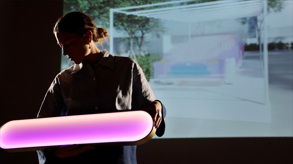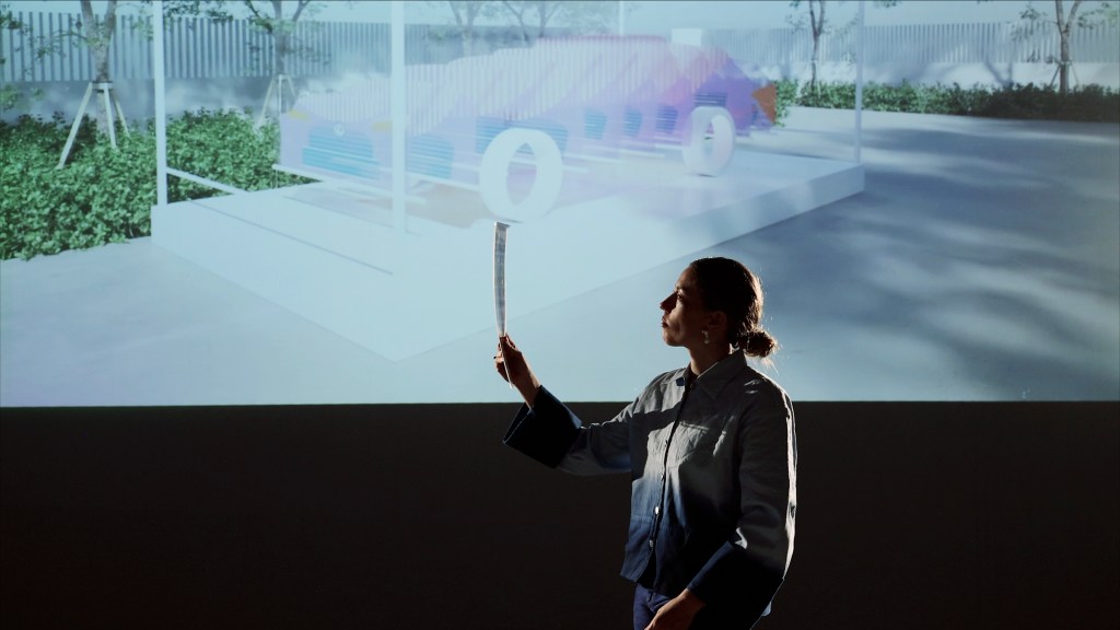 Random Studio, known for their spatial experience design, came on board to help realize van Aubel’s vision, which models the LF-ZC at-scale, though constructed with OPV sheets that cast colorful shadows as sunlight hits them throughout the day. Light and motion sensors within the sculpture will add to the installation’s interactive elements, aiming to be an immersive multi-sensory experience.