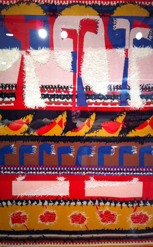 The “tunnel” installation—designed to make a strong optical effect by intertwining 16 orange and black tubes—also resembles spools of thread and hints again at the neck motif.
