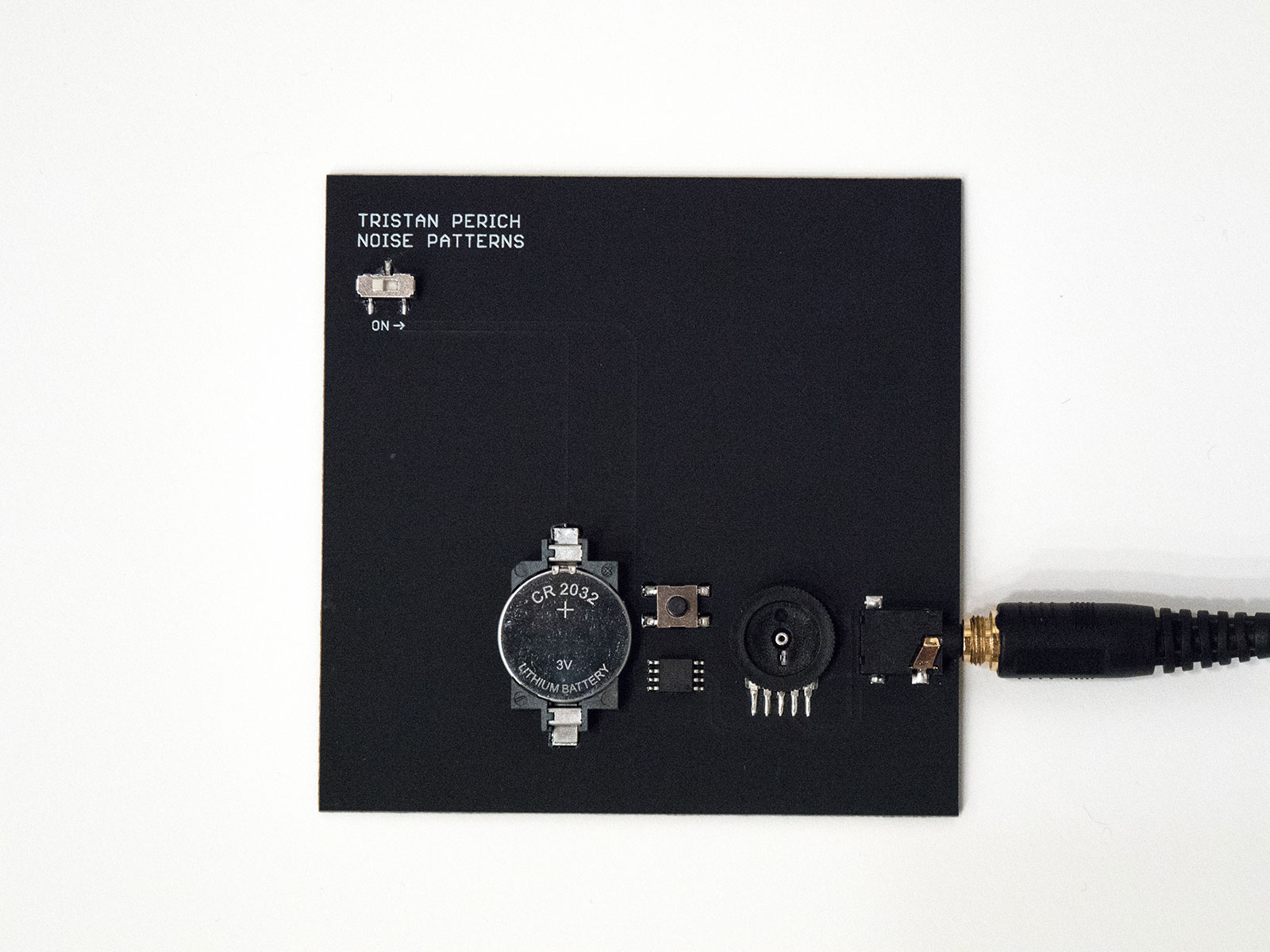 The six-track album is not a CD or vinyl record. In the vein of Perich’s previous projects, it’s a black circuitboard made up of an on/off switch, microchip, watch battery, volume knob, fast-forward button and headphone jack. The raw material he’s working with this time is digital 1-bit noise. Unaltered, the random oscillations could sound like a broken TV channel, but Perich—through his programming and arranging—shapes it into captivating rhythmic beats and textures that are as relentless as ocean waves. It’s definitely not dinner party music but the blunt directness and simplicity of this experimental music project makes it one that we can actually appreciate.