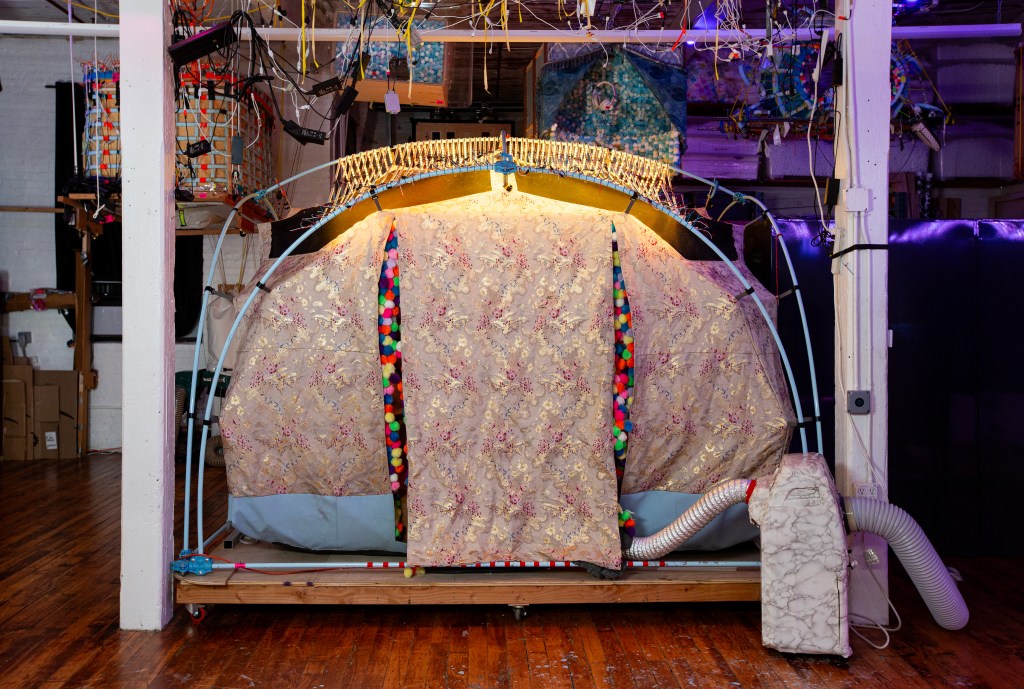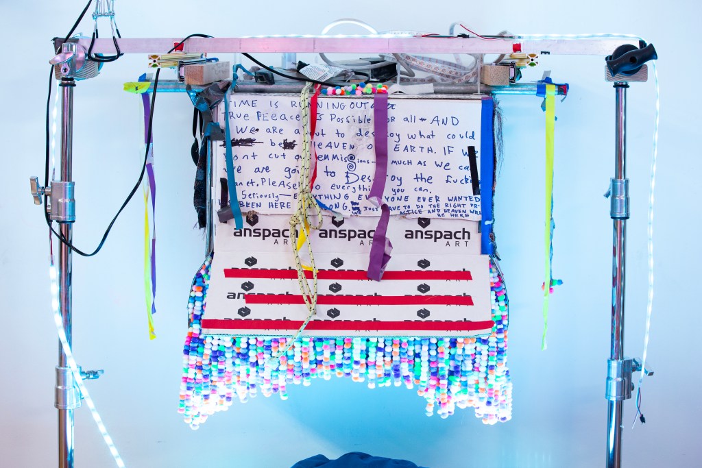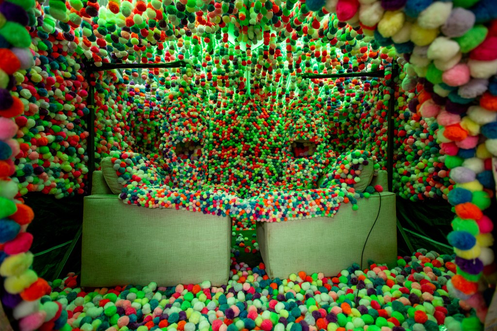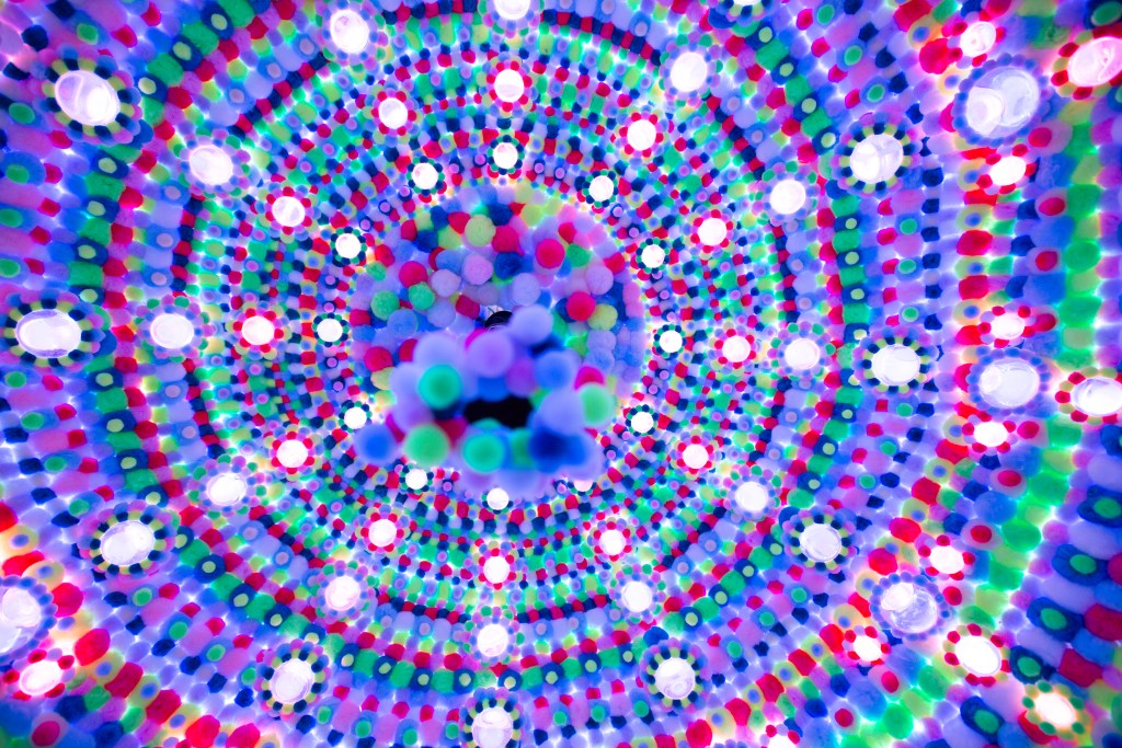 Inside the Brooklyn studio of the late artist Bobby Anspach, four multi-sensory, immersive art machines open pathways to wondrously psychedelic worlds—sometimes bringing the entire universe into your own eye, sometimes requesting that you sustain an intimate connection, amidst a blanket of rainbow orbs, for a few seconds longer. Entitled “Place for Continuous Eye Contact,” the astonishing exhibit celebrates the life of the Beacon, New York-based artist, who passed July 2022. And what a celebration it is—of human connectedness, consciousness and creativity.