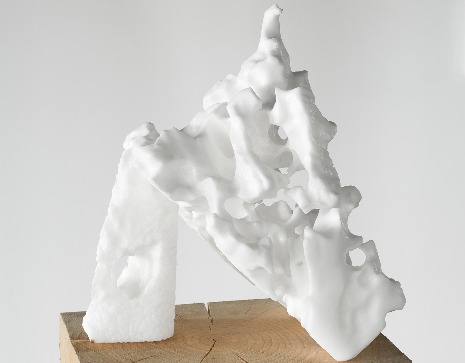 It began with the concept—and, soon after, the title. “We wanted an exploration of works underwater and into space,” Sirkin says. “But I wanted to make sure that there was a spiritual, ethereal element to this. In our group shows, I am pulling together unexpected juxtapositions. In exploring sea and space we were drawn to the idea of the void and the abyss.” Certain works touch upon all of this literally, but others—including Mollie McKinley’s striking salt sculpture “Support Monolith” (2017) and Fafnir Adamites’ otherworldly “Impediment Series II” (2018) of sculpted paper and fiber pulp—in more abstract ways.