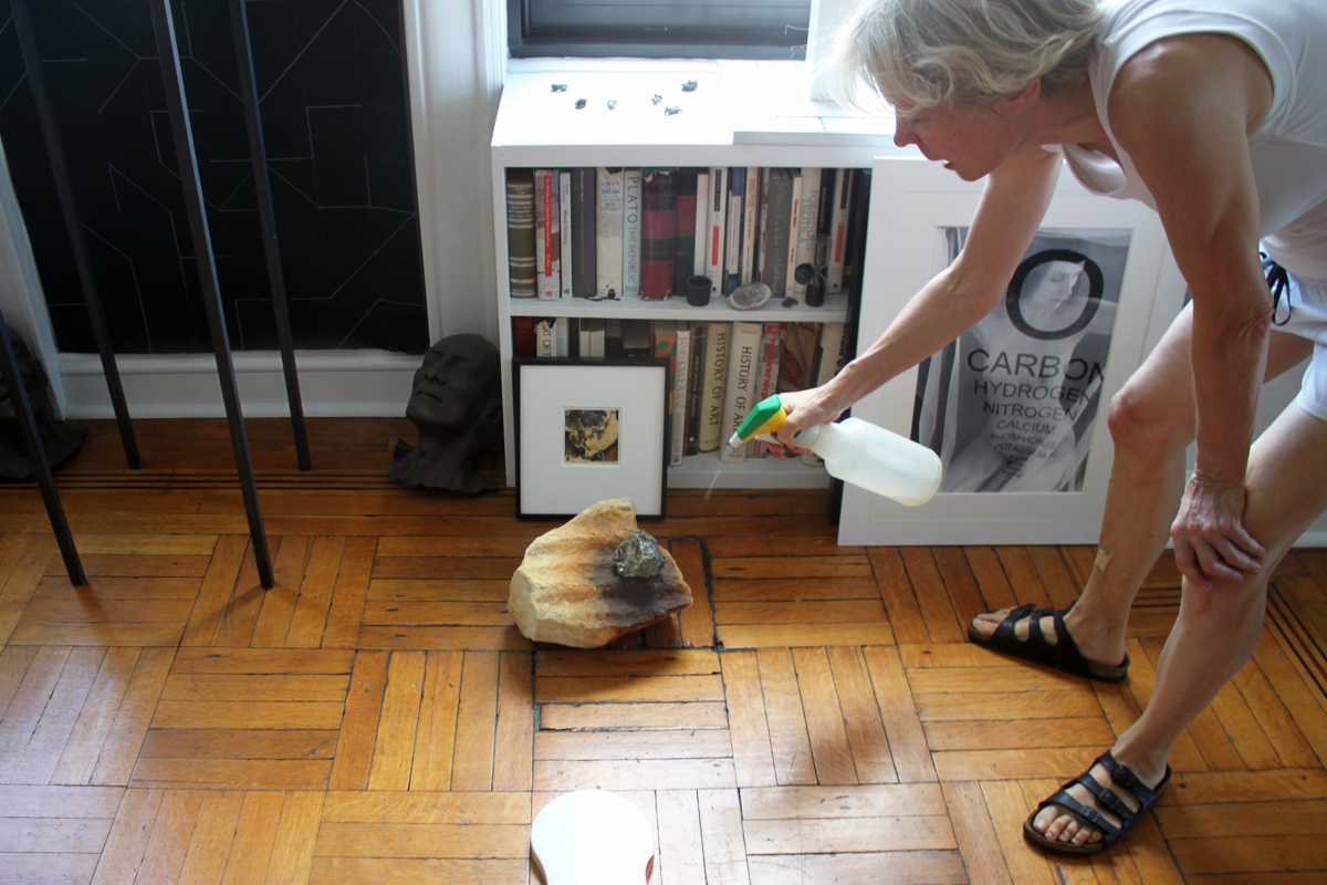 As we speak, Anastasi drifts from sketching to playing the piano while Bradshaw seizes upon her objects, activating them. “Watering your sculpture again, dear?” he asks. She notes it is water that coaxes out a stone’s dimension. It’s fitting, then, that Bradshaw is among the first contemporary artists invited to exhibit her sculptures alongside Isamu Noguchi’s installation at his namesake Queens museum and sculpture garden for the “Museum of Stones” exhibition. It’s a first for the museum to invite outside artists to exhibit works at the original Noguchi installation.