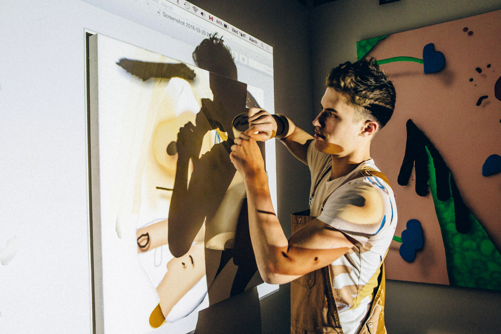 Exploring the painter’s bright, figurative works at the intersection of tactile and digital