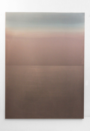 When tasked with describing her anodized work, Ando says, “They’re paintings that use sculptural materials.” The planar works have a texture and visual weight that communicates heft in spite of the light and airy gradients. While the highly finished pieces indicate a degree of precision, Ando’s process is largely self-taught. After gaining access to an industrial facility, the artist began to hand-dye plates in anodizing baths—a process that made quite a sight for on-site workers.