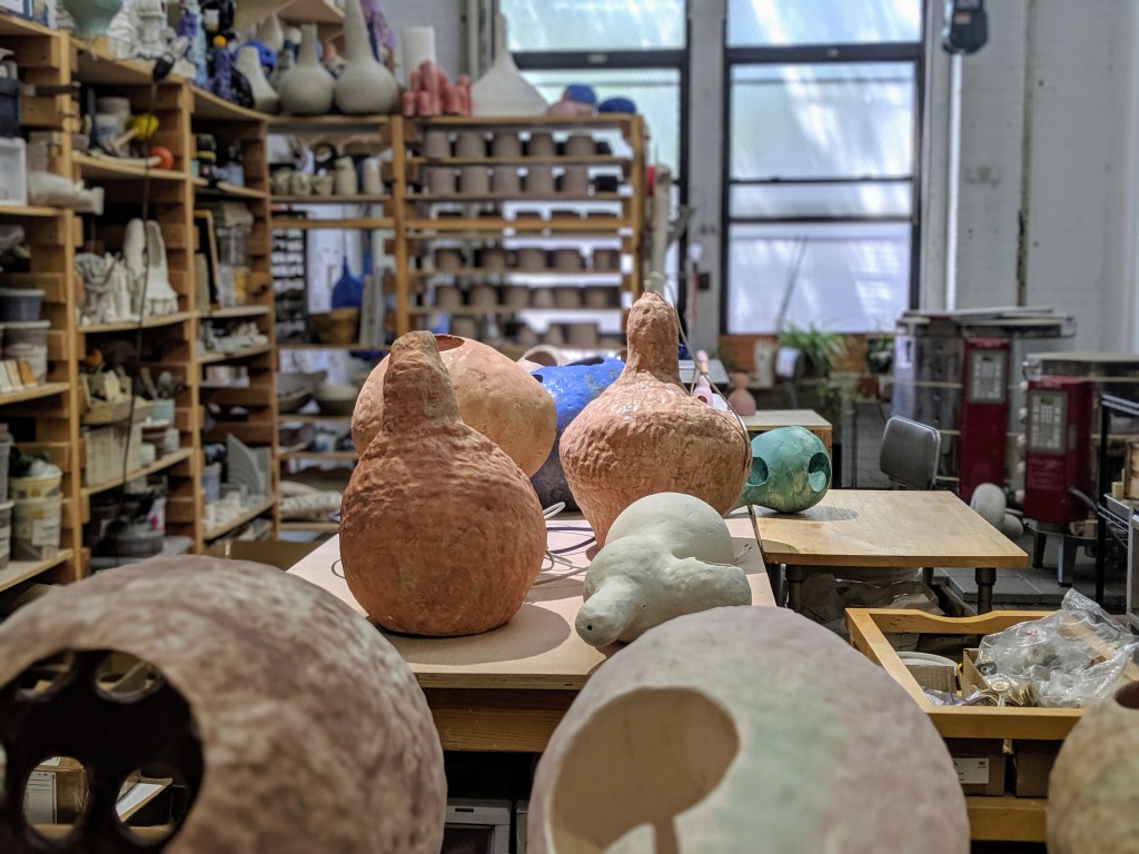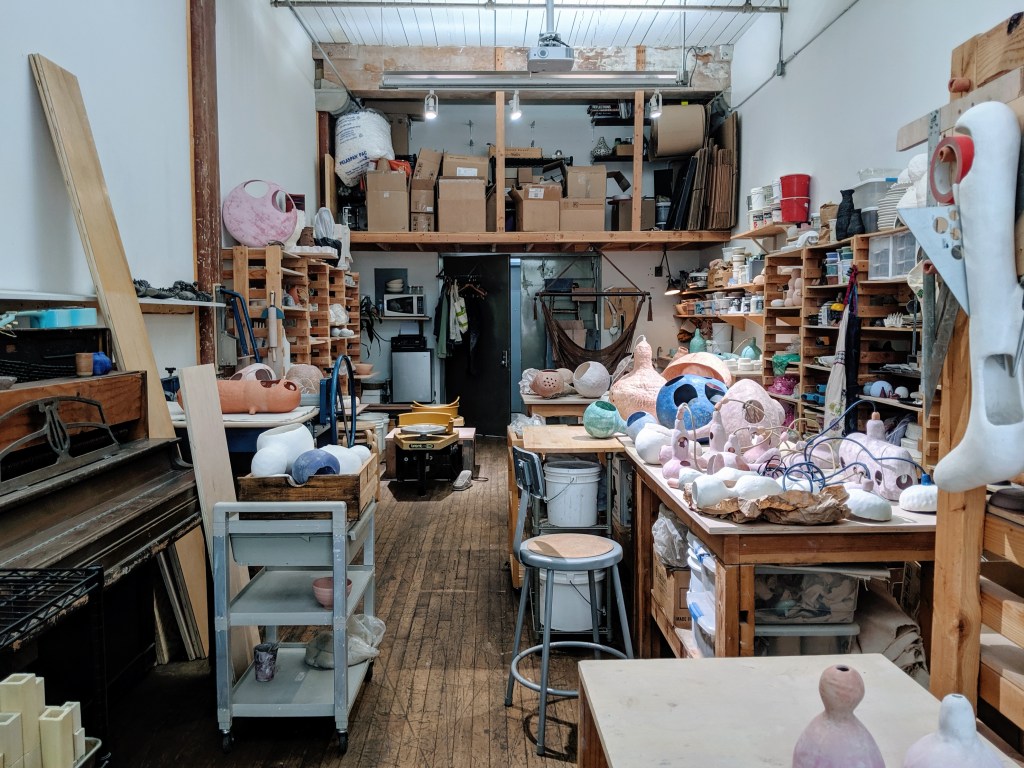 Her studio is a step toward this goal. This includes monthly meet-ups she hosts with the other artists in her shared space and guests from all mediums: scientists, poets, pianists and more. “They come here to share their work,” she says. In many ways, one can imagine the inspiration and ideation that abounds here is an equal draw for these guests, not just the opportunity to present or perform. “There are many different ideas,” she concludes. “Coming up with the idea is the easy part. But then actually doing it, or picking one, is hard for me.”