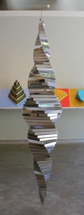 Also of note are Tauba Auerbach‘s die-cut paper sculptures. Completely collapsable, “[2, 3]” is a series of giant pop-up books that unfold into wild geometric forms and can be closed to become books at any point. Another geometric work, “Spiral (for LB)” by Alyson Shotz is a life-sized hanging sculpture inspired by Louise Bourgeois’ “Spiral Woman”. The sculpture’s reflective surface plays with light in the space, changing according to day and season.